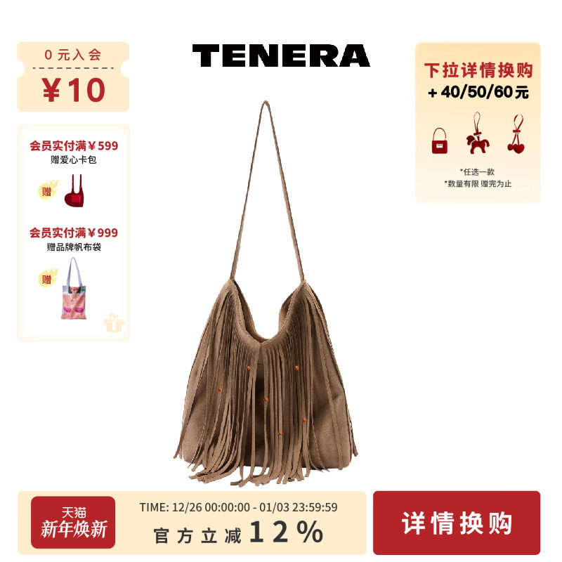 TENERA波嬉系列流苏腋下包水桶包斜挎单肩包包女款2025新款通勤包