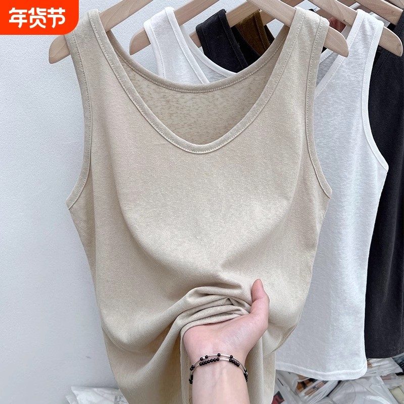 背心内搭女竹节棉2024新款冰丝棉麻白色宽松上衣打底小吊带夏外穿