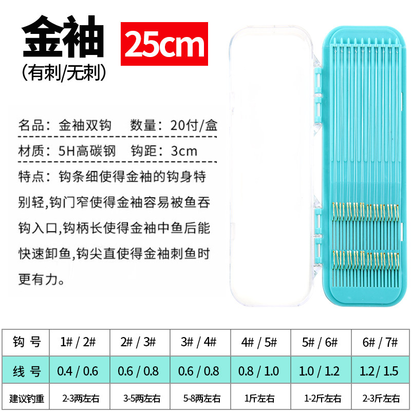 短子线金袖鱼钩有刺金袖无刺双钩野钓专用子线成品双钩特价鱼钩