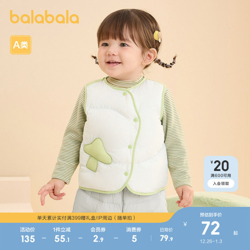 巴拉巴拉balaOne儿童羽绒马甲女童男童外套上衣新款童装2025秋冬