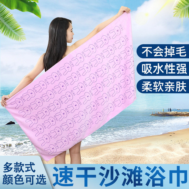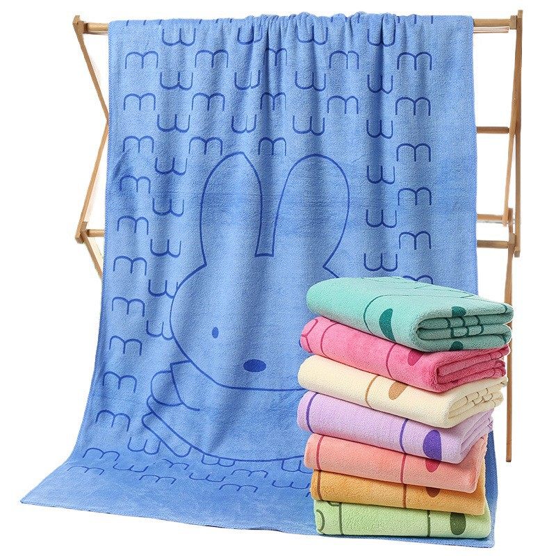 超细纤维浴巾沙滩巾吸水速干儿童大毛巾兔头印花卡通游泳洗澡浴巾