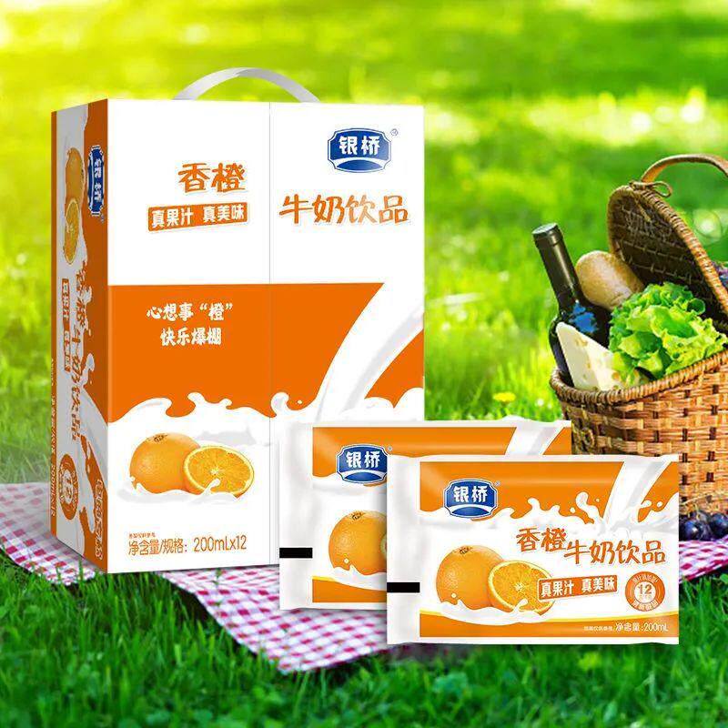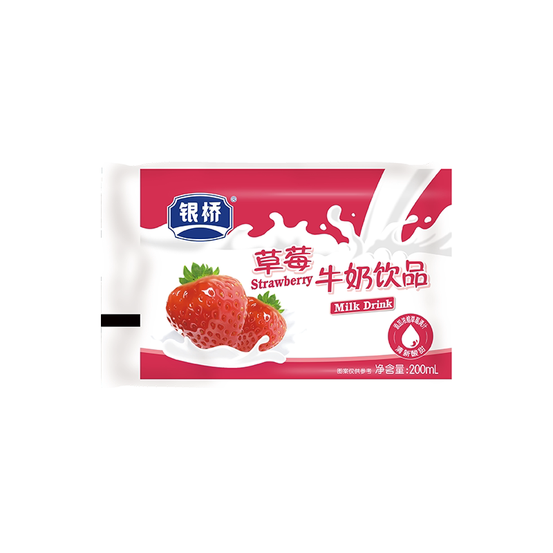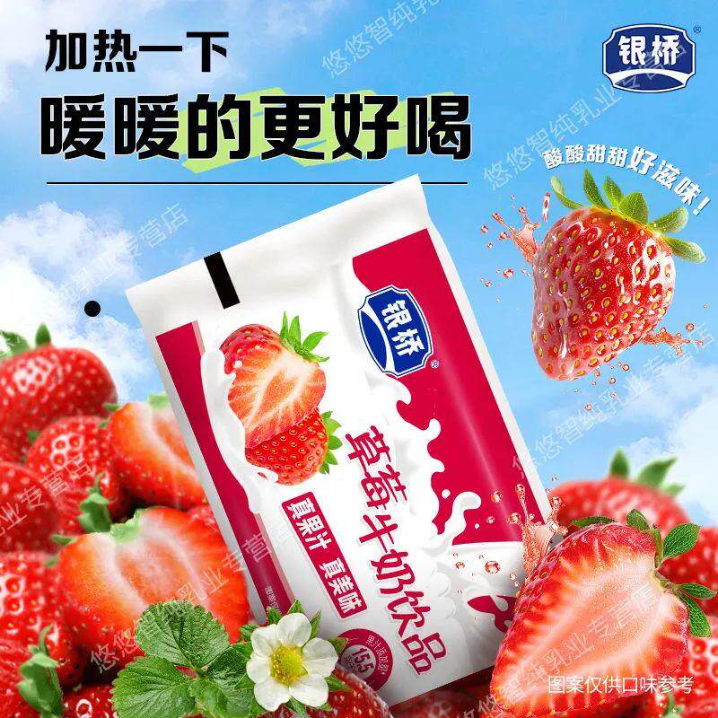 银桥草莓牛奶饮品酸甜葡萄香橙蓝莓菠萝混合口味早餐袋装含乳饮料