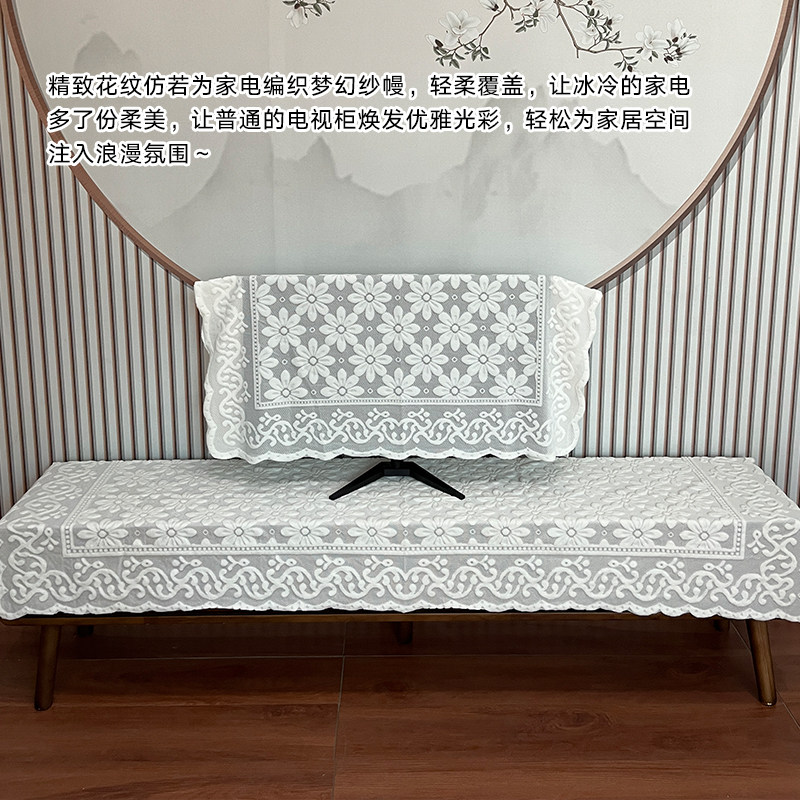法式绣花床头柜盖巾 ins风蕾丝多用途花边餐布电视机防尘盖巾桌布