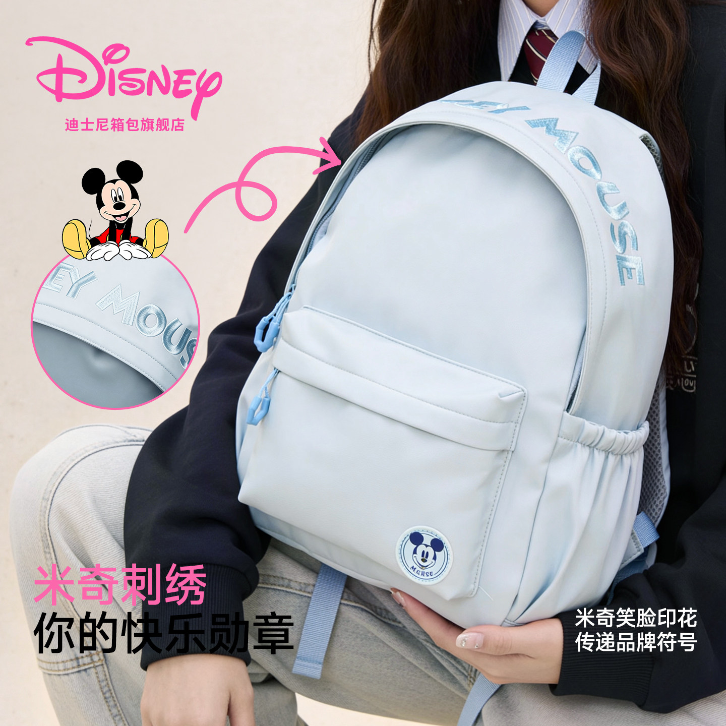 迪士尼双肩包女旅游轻便大容量背包女生初中高中生2025新款书包