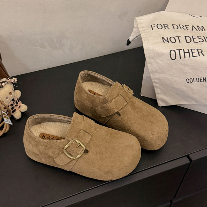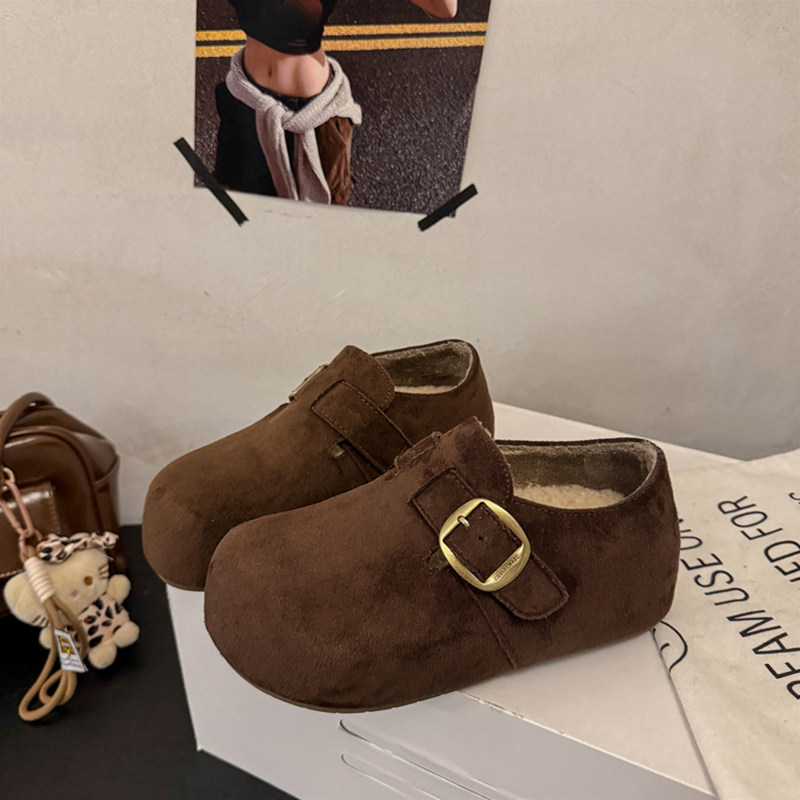 厚底内增高加绒勃肯鞋女2025秋冬新款一脚蹬丑萌大头全包博肯棉鞋