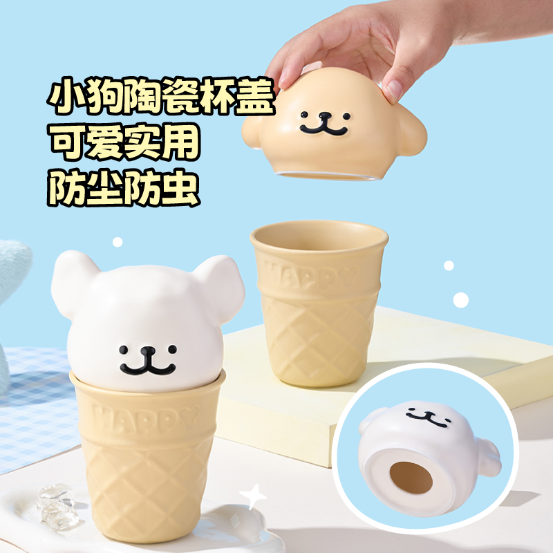 言仓线条小狗雪糕杯马克杯家用水杯陶瓷杯实用情侣生日礼物