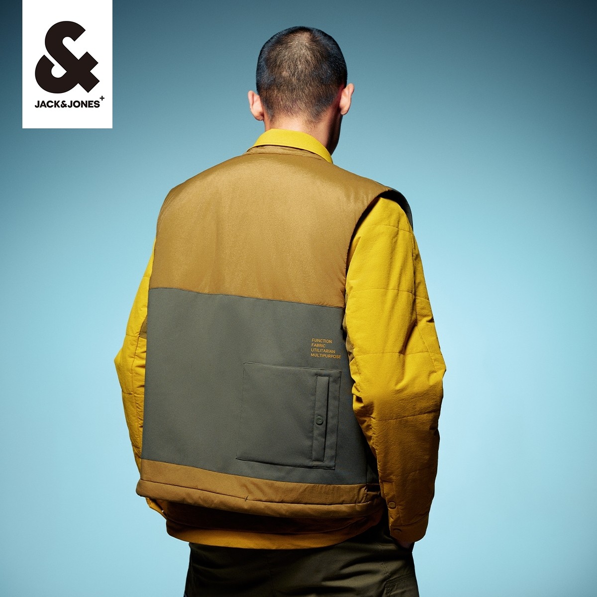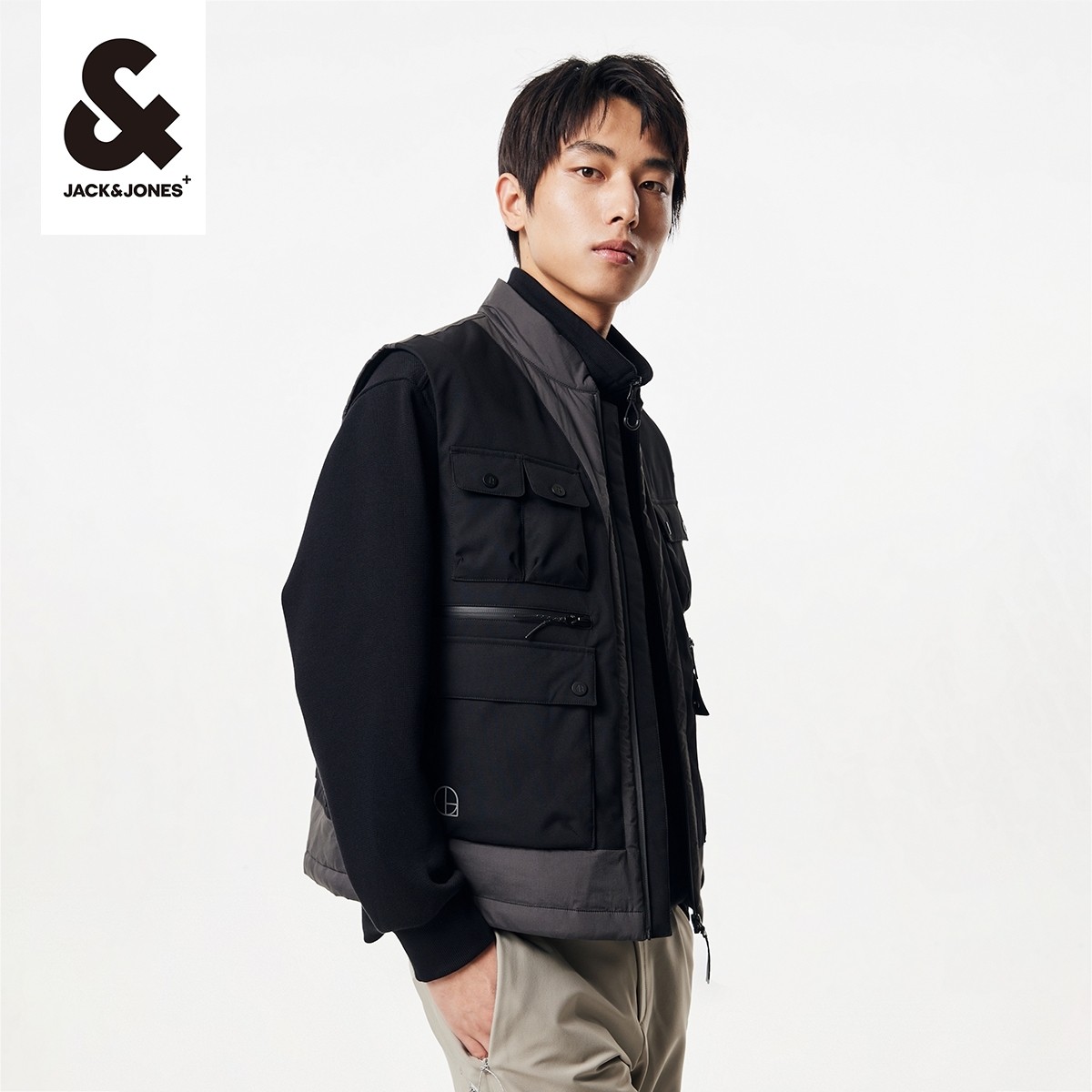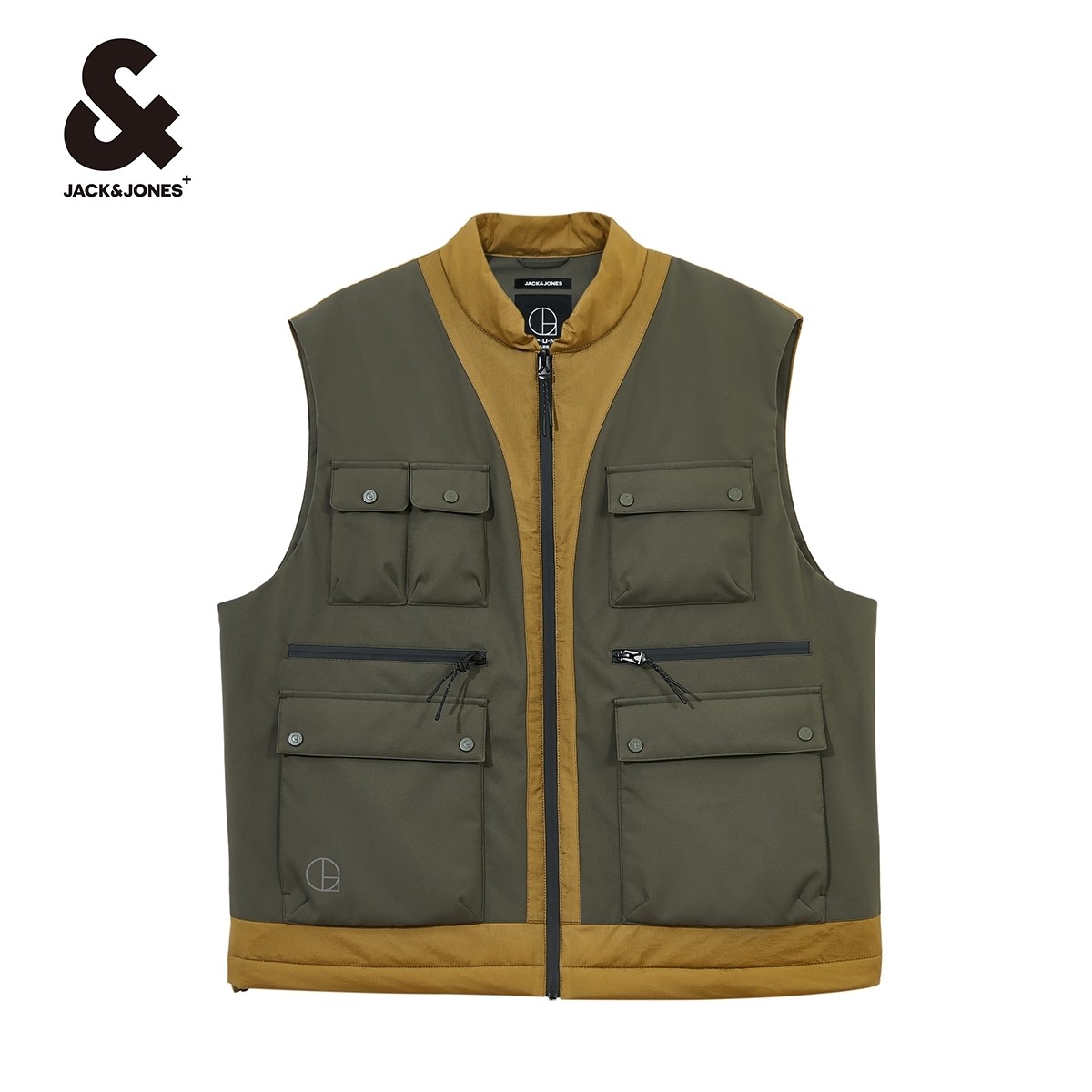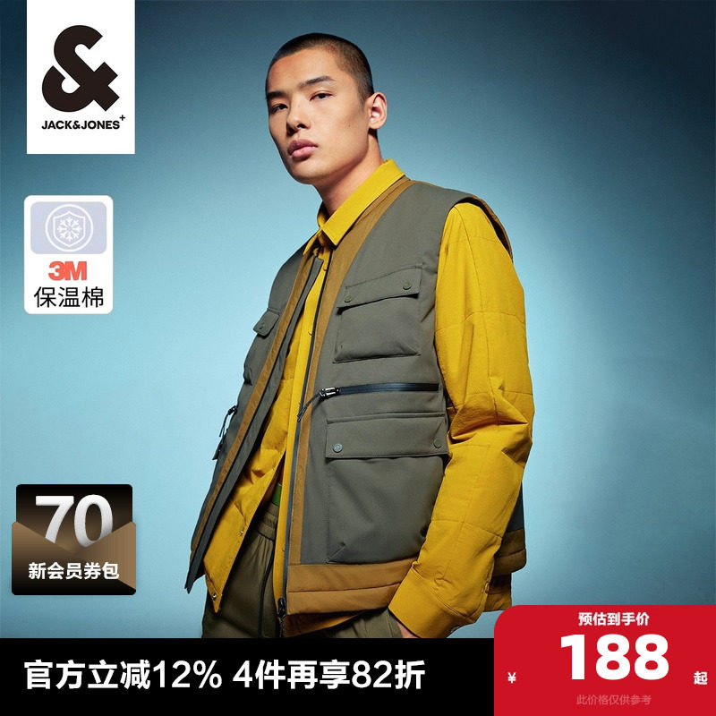 杰克琼斯秋季新款男士衣服舒适多口袋拼色字母上衣棉马甲男款男装