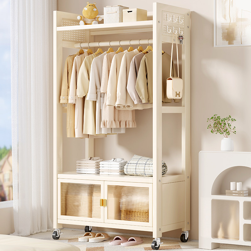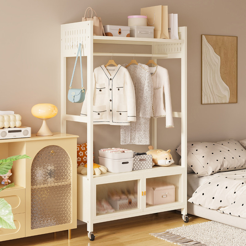 衣架落地卧室奶油风挂衣架家用铁艺简易晾衣架室内客厅移动衣帽架