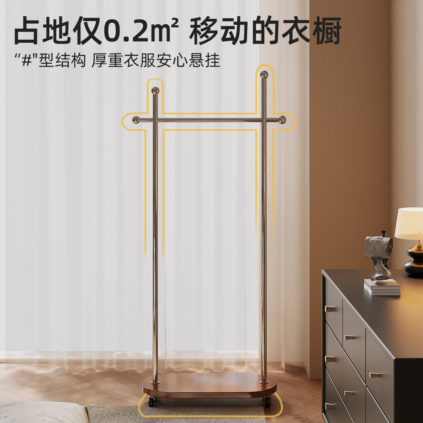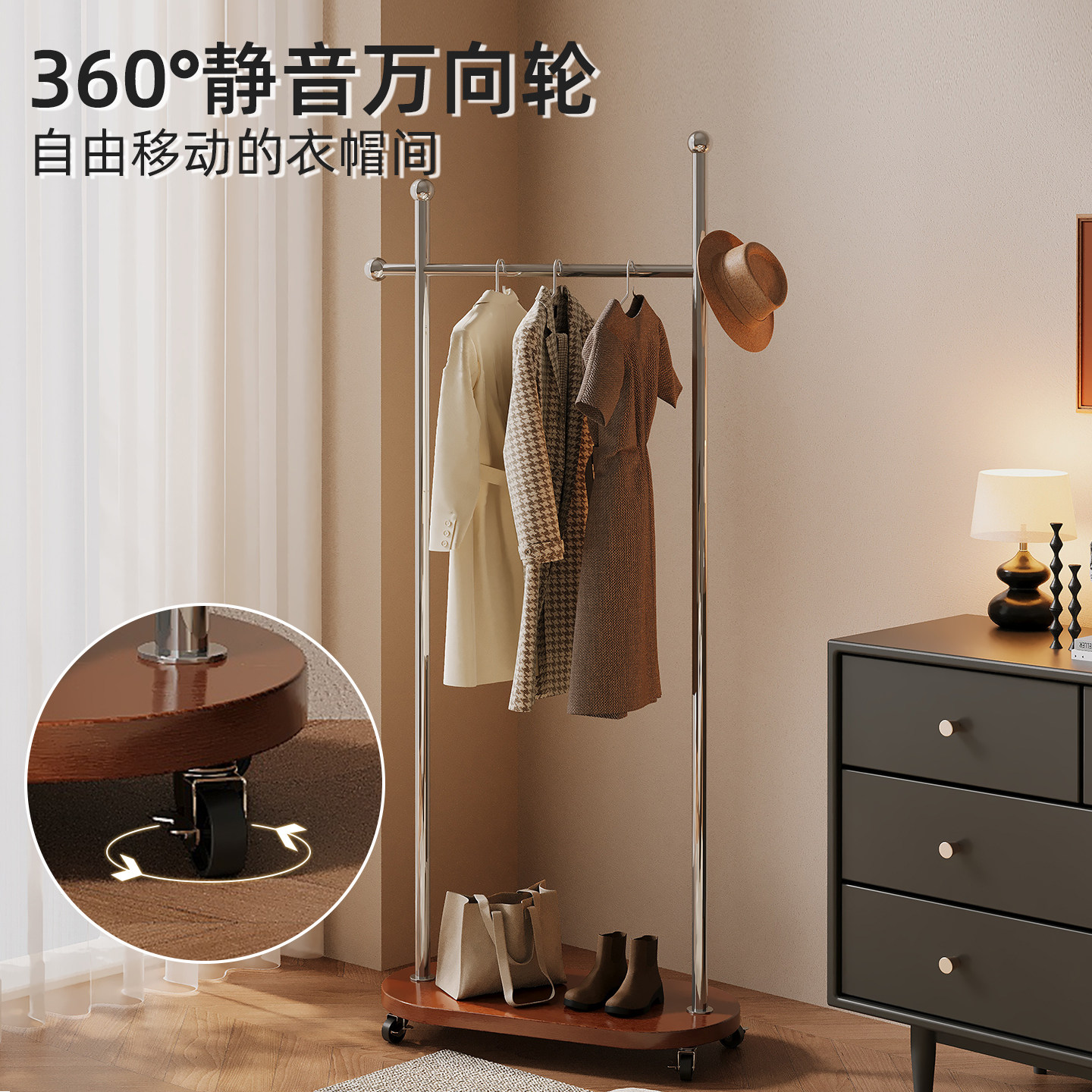 衣帽架可移动晾衣架落地房间挂衣架子卧室衣服收纳架客厅简易置物
