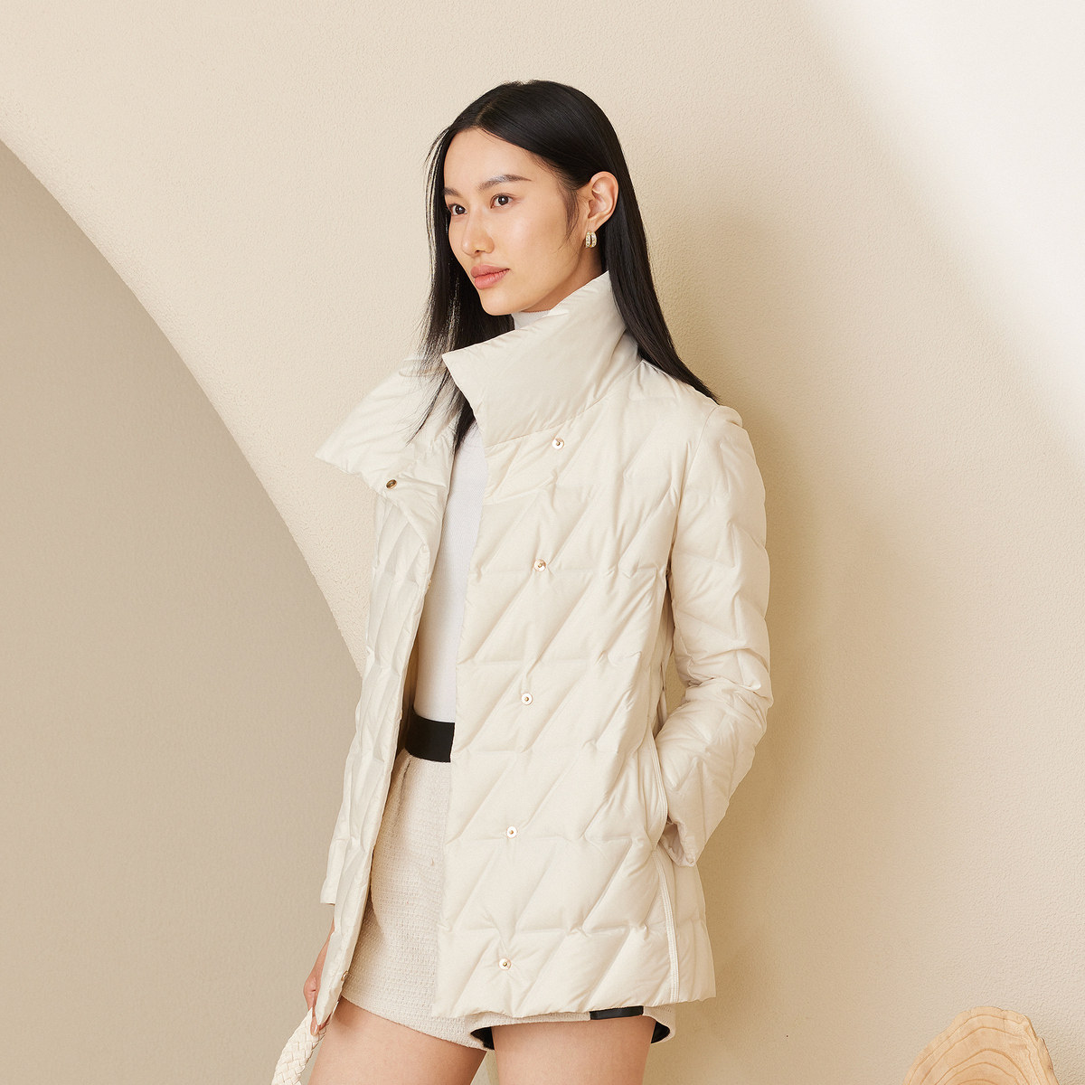 【鞠婧祎同款】鸭鸭2025年冬新款百搭短款女士纯色立领羽绒服外套