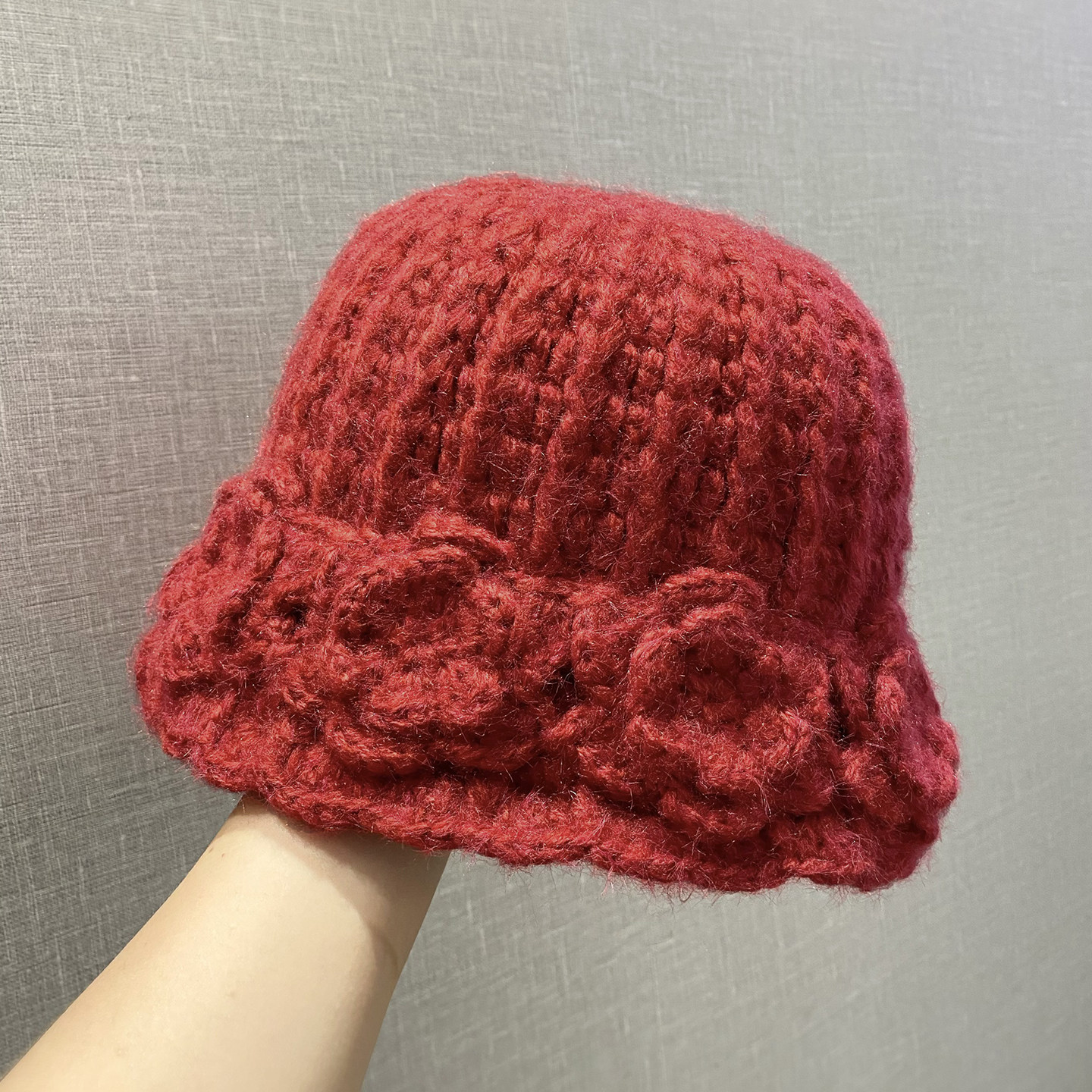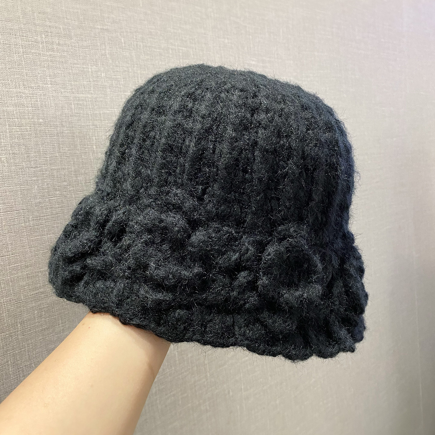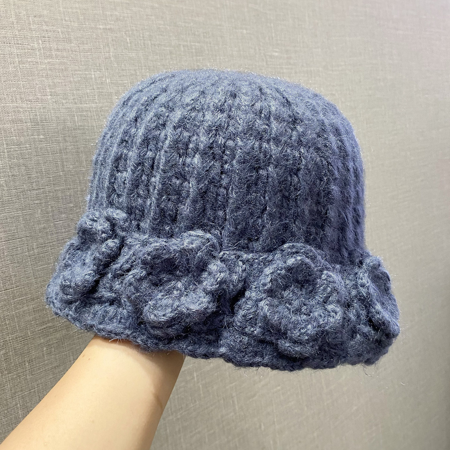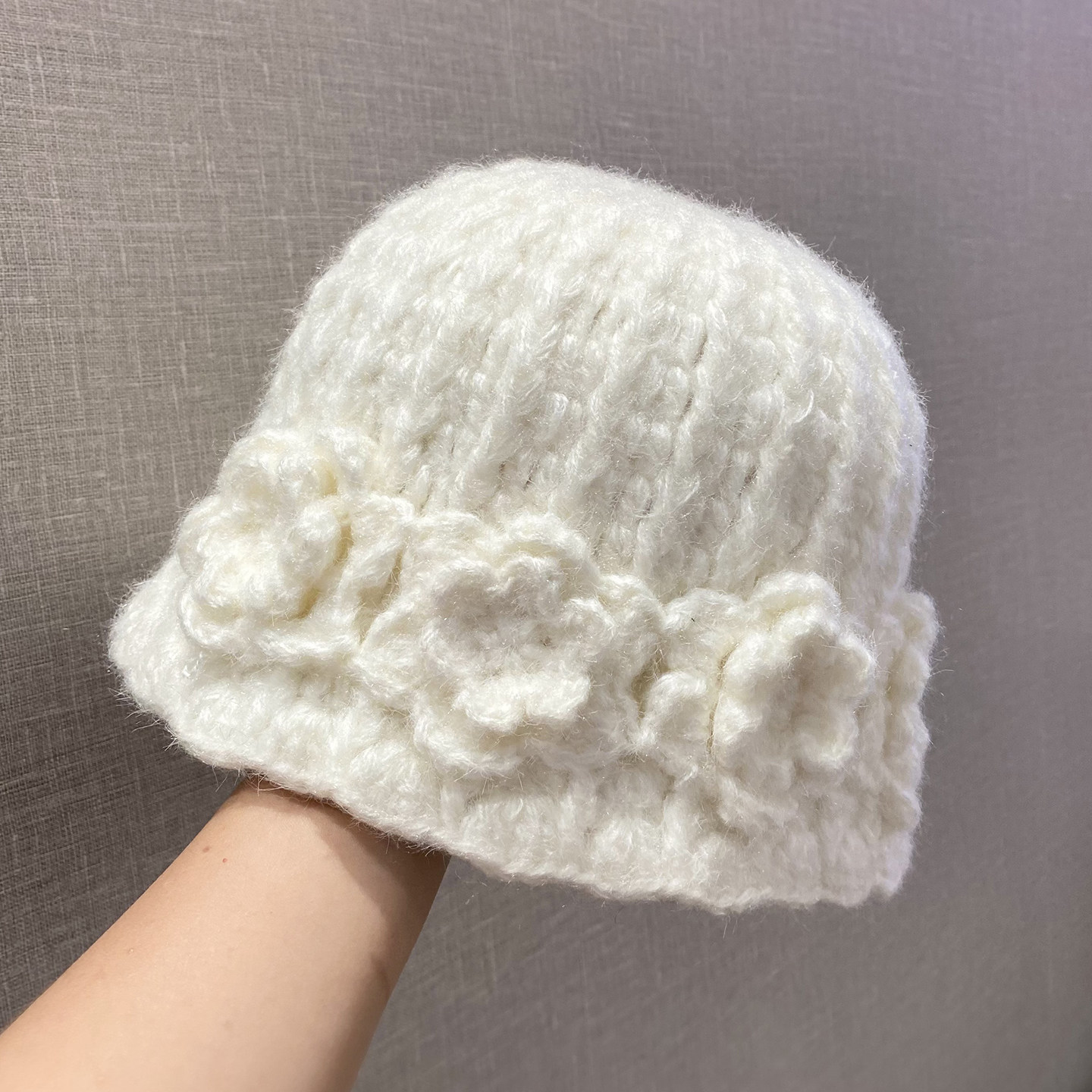 立体花朵针织桶帽女秋冬季新款户外出游保暖百搭套头帽显脸小盆帽