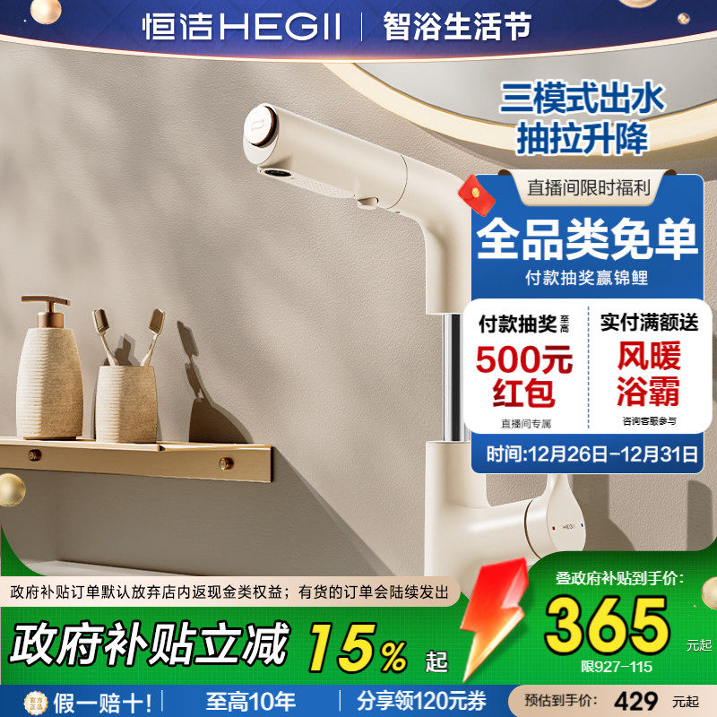 恒洁面盆龙头多功能抽拉式浴室洗发家用洗手盆冷热水龙头升降