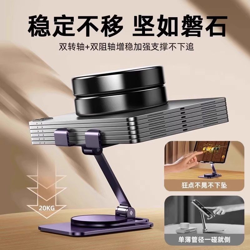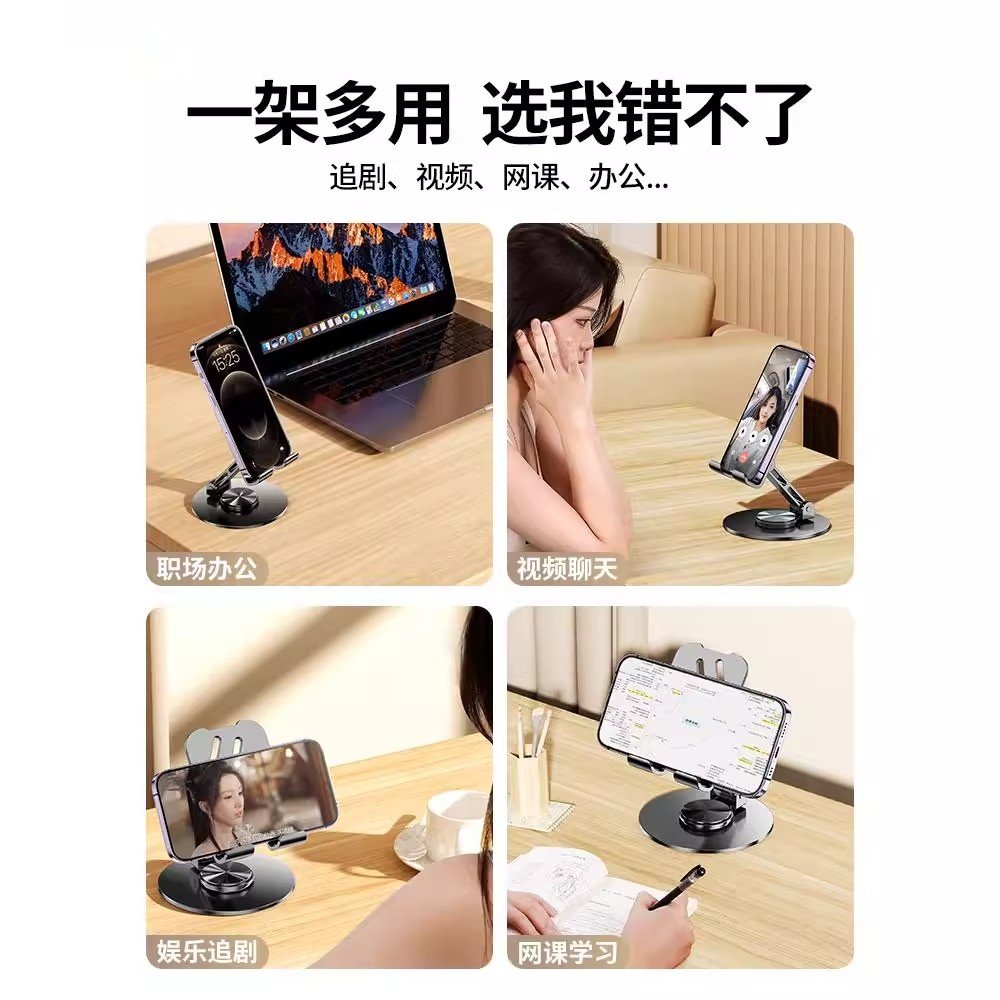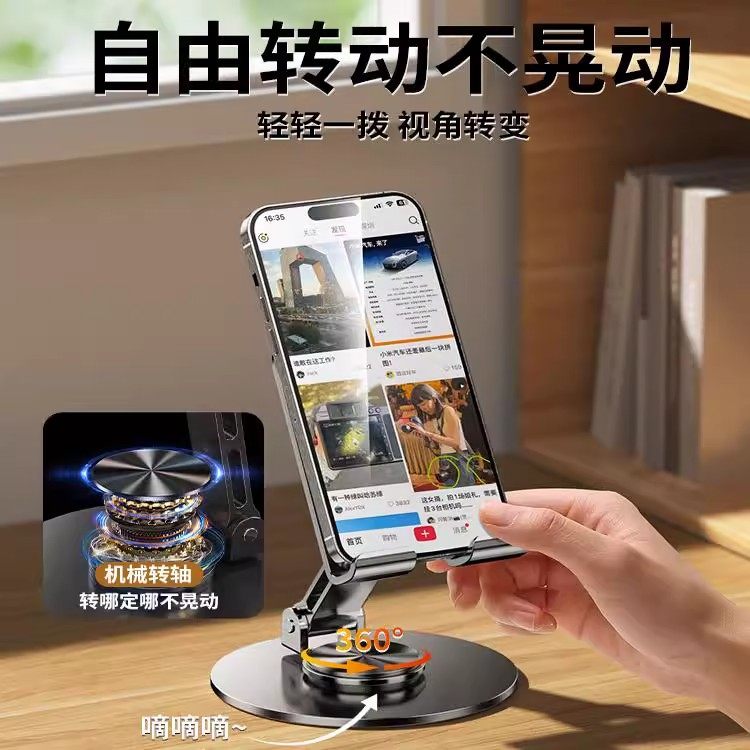 全金属手机支架2025新款桌面懒人360度旋转手机架平板iPad支撑架直播稳固可折叠合金架子多功能车载便携