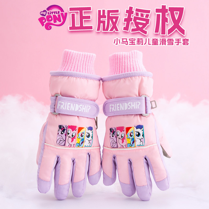 小马宝莉儿童滑雪手套女孩大童冬季户外玩雪保暖加厚防寒防水防风