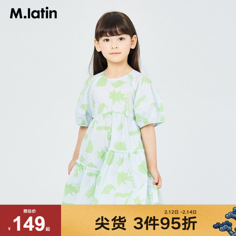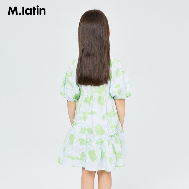 [娃娃裙]马拉丁童装女大童儿童夏新款泡泡袖木耳边连衣裙裙子