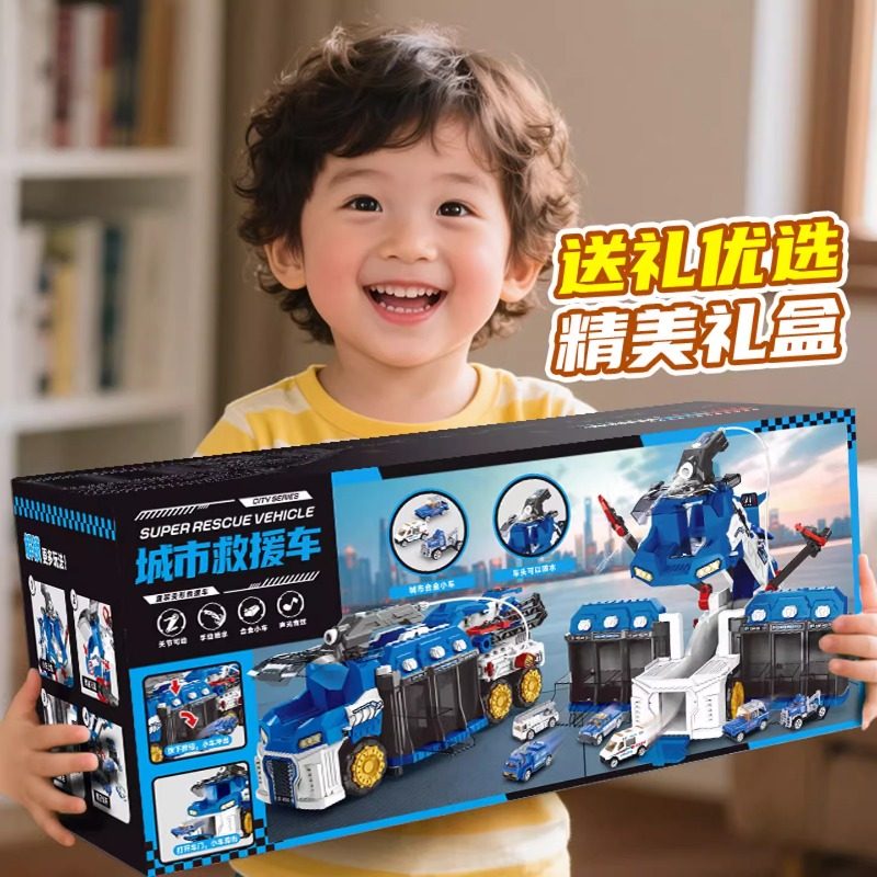 多功能救援消防车儿童玩具大号警车合金喷水弹射轨道益智男孩礼物