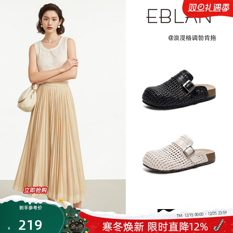 EBLAN/伊伴编织厚底勃肯拖鞋女外穿2025新款春夏镂空平底包头凉拖