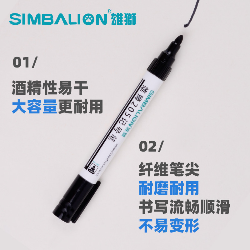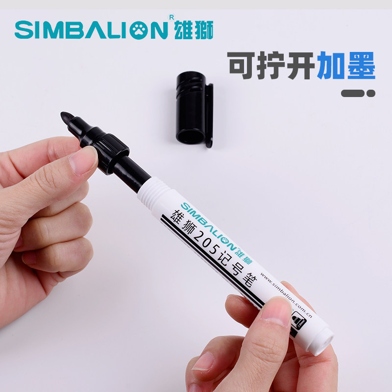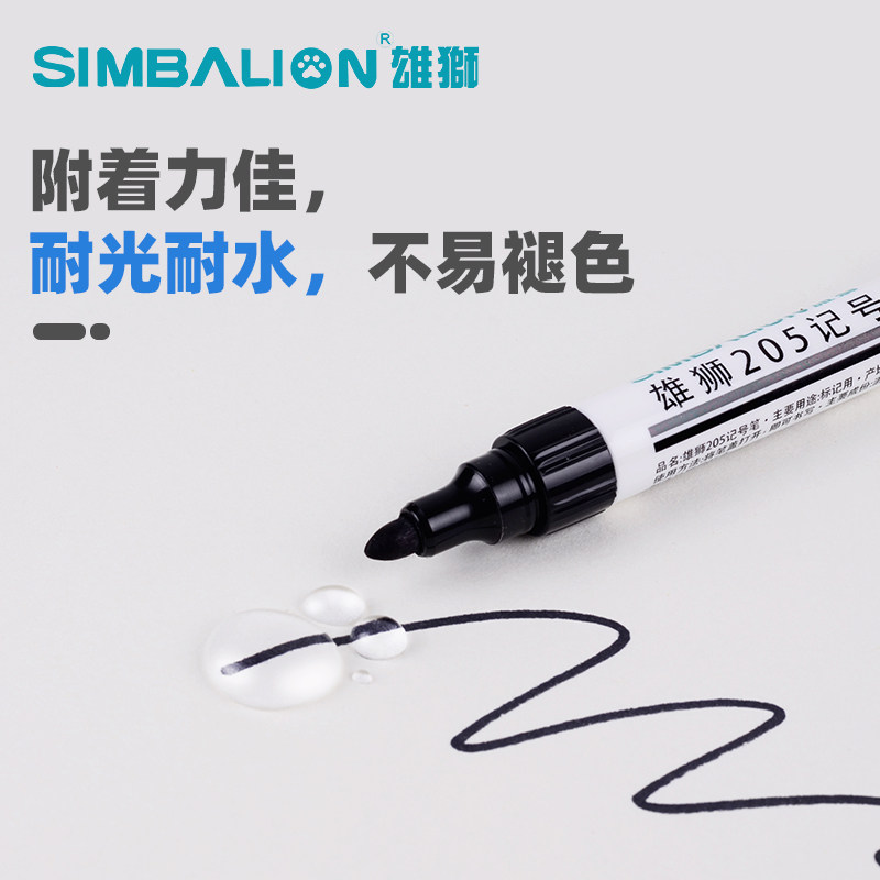 雄狮205油性记号笔2.0mm粗笔头可添墨水单头奇异笔黑蓝红防水速干
