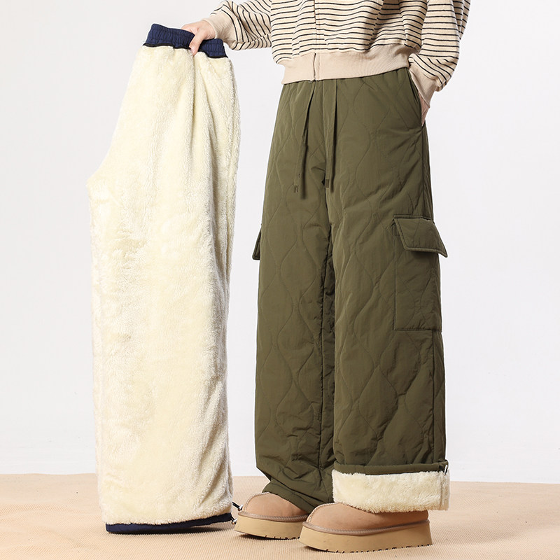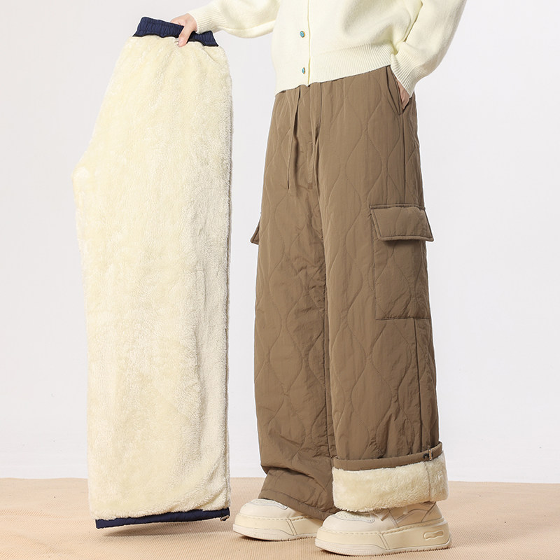 回力羊羔绒工装裤子男士冬季2025新款加绒厚防寒保暖东北特厚棉裤