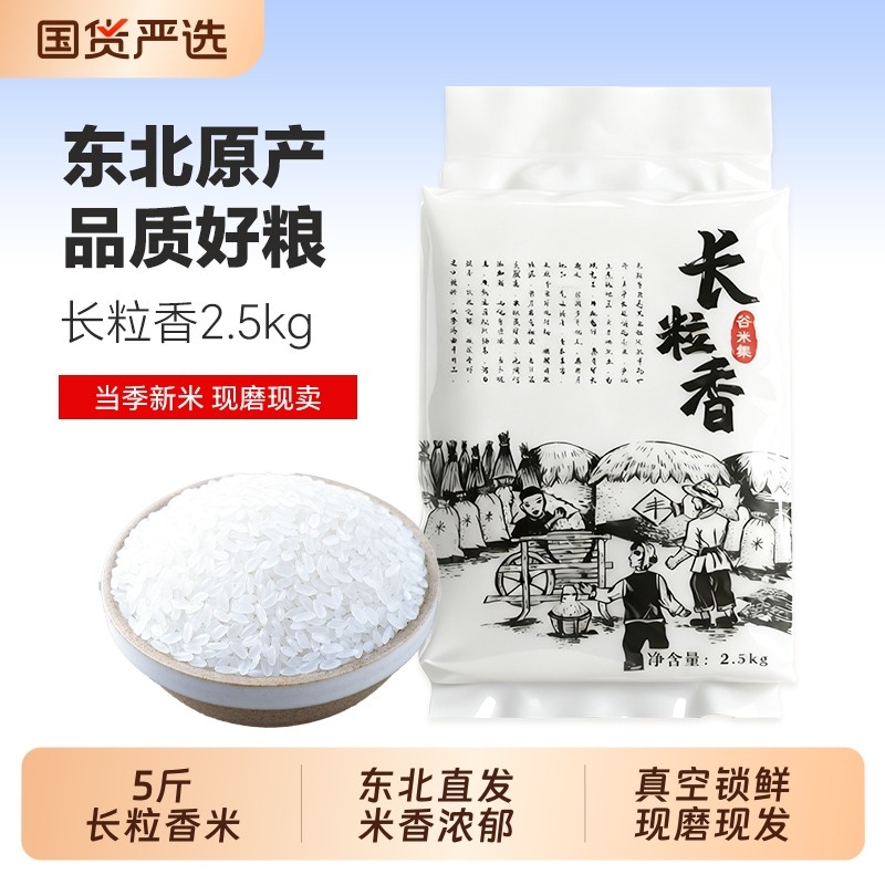 东北长粒香米2.5kg长粒大米黑龙江大米粳米5斤真空新米米饭谷米