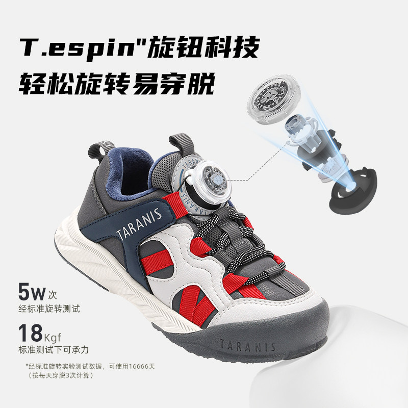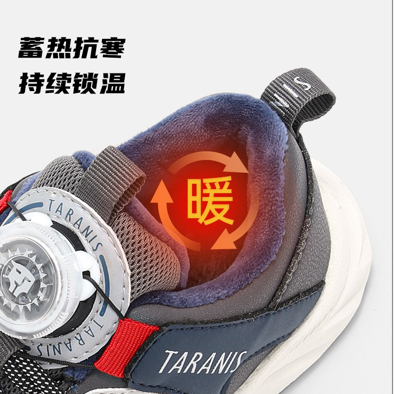 泰兰尼斯儿童冬季款男童保暖加绒运动鞋跑步平衡车女童时尚旋钮鞋