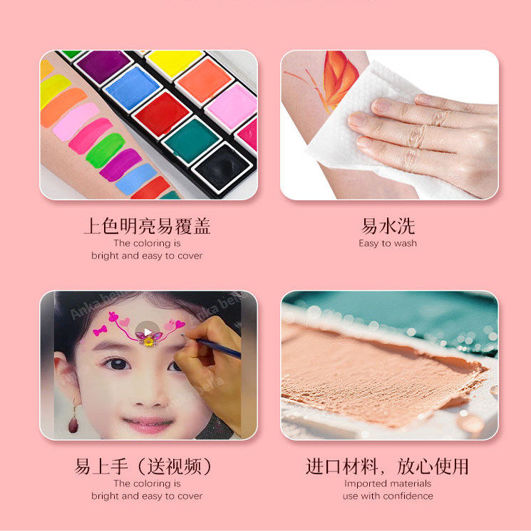 Anka Bella儿童面部彩绘人体水性彩彩绘专用颜料-圆饼黄橙色30克