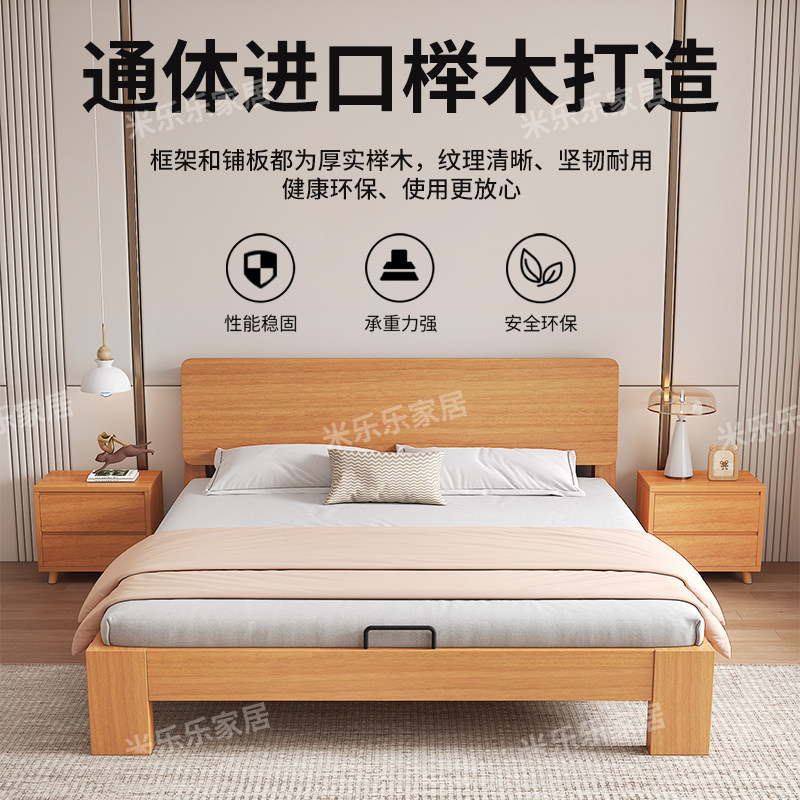 全榉木实木床现代简约1.8米主卧双人床1.5米高端原木风家用单人床