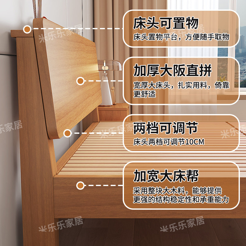全实木无床头床架榫卯静音悬浮床小户型齐边排骨架床架可定制尺寸