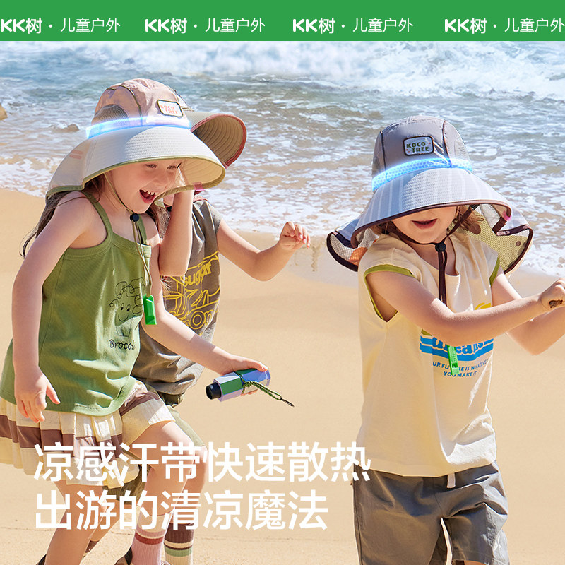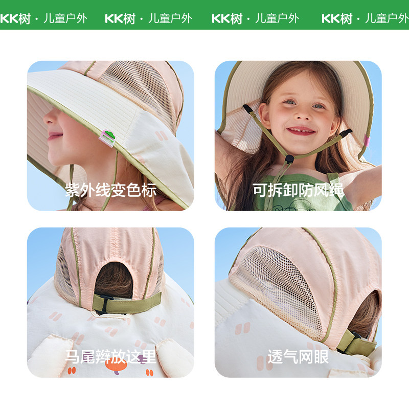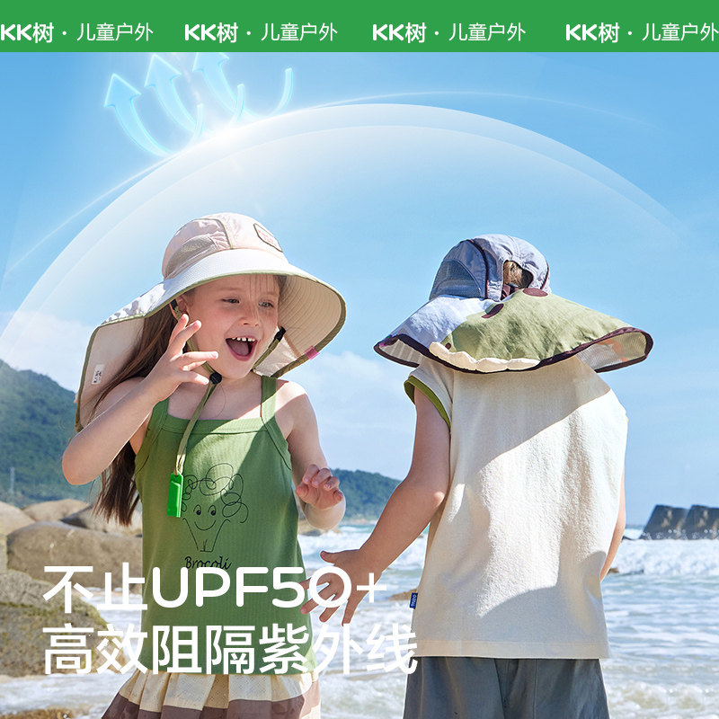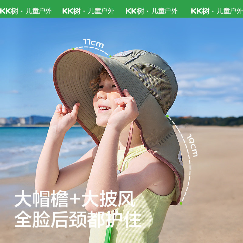 KK树原纱儿童防晒帽防紫外线男孩女童大帽檐遮阳帽宝宝太阳帽新款