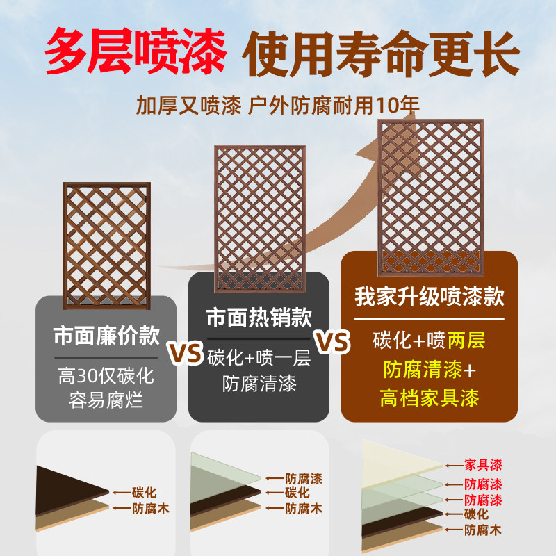 防腐木栅栏围栏户外庭院网格护栏阳台爬藤架格栅篱笆花园隔断花架