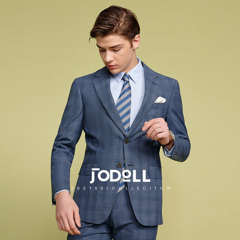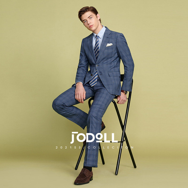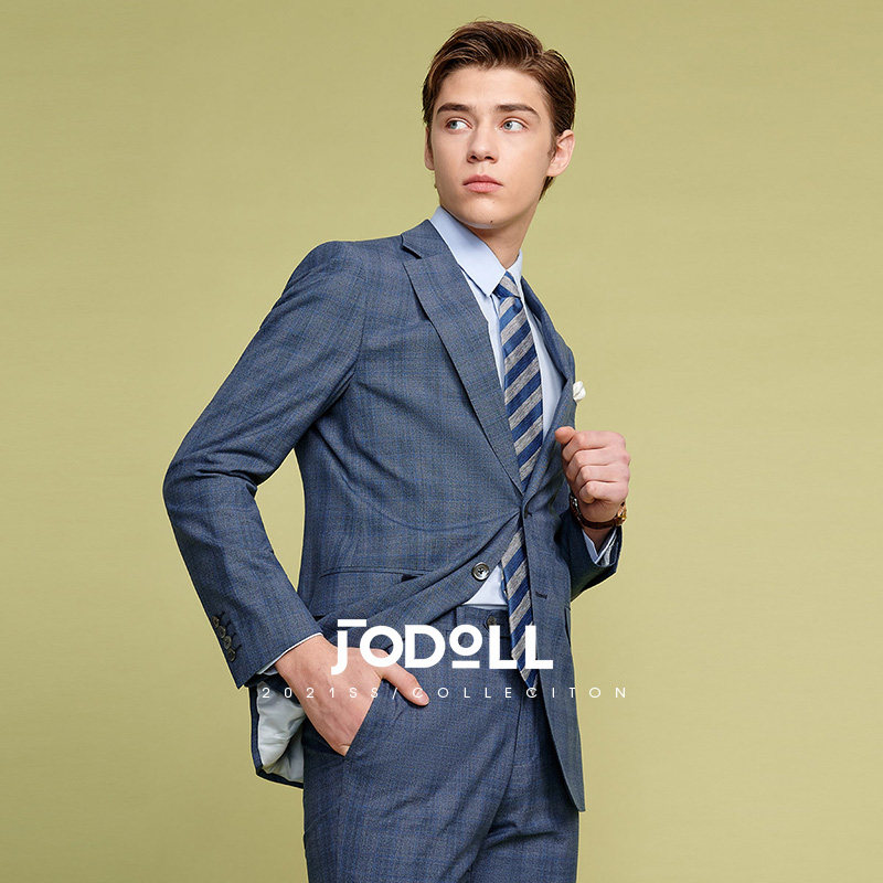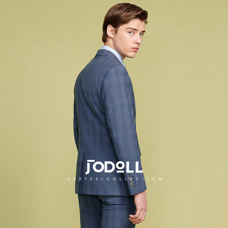 JODOLL乔顿男士【桑蚕丝】】商务西服韩版潮流格纹修身羊毛小西装