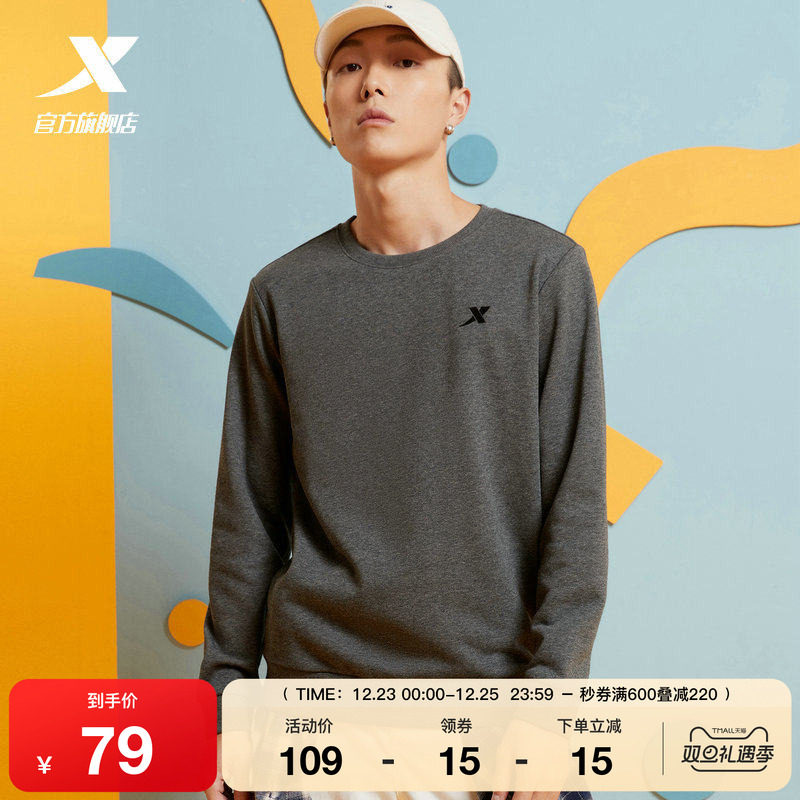 特步运动卫衣男春秋官网旗舰男装宽松圆领长袖上衣针织运动套头衫