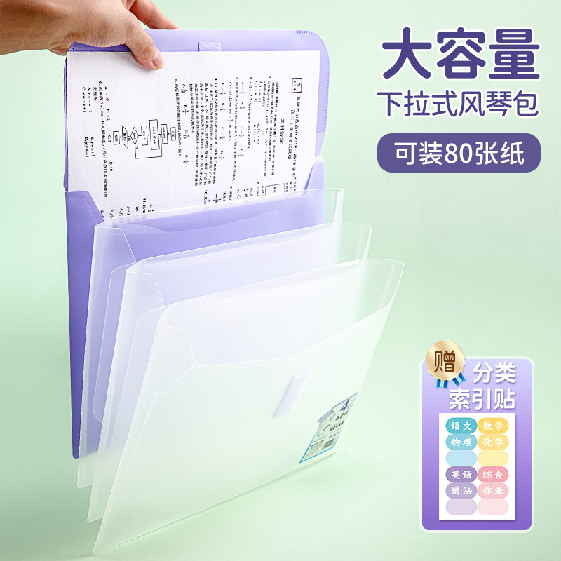 金得利试卷收纳袋风琴包4阶易查找试卷分类册A4横式大容量学生书袋科目袋书本文件袋笔袋学习资料册补习袋