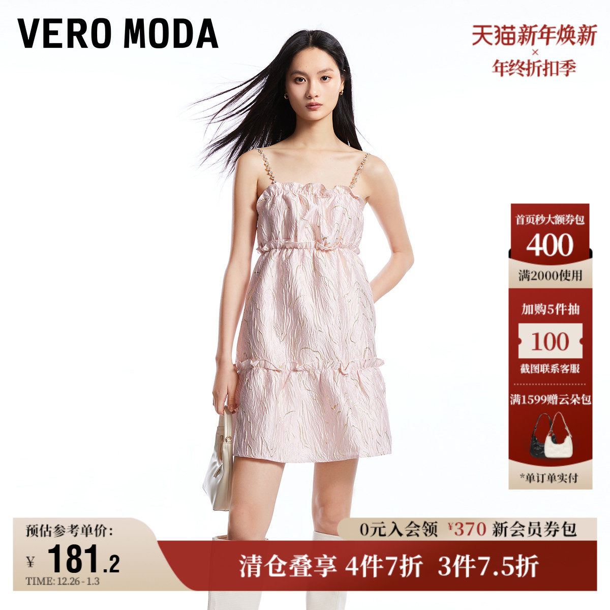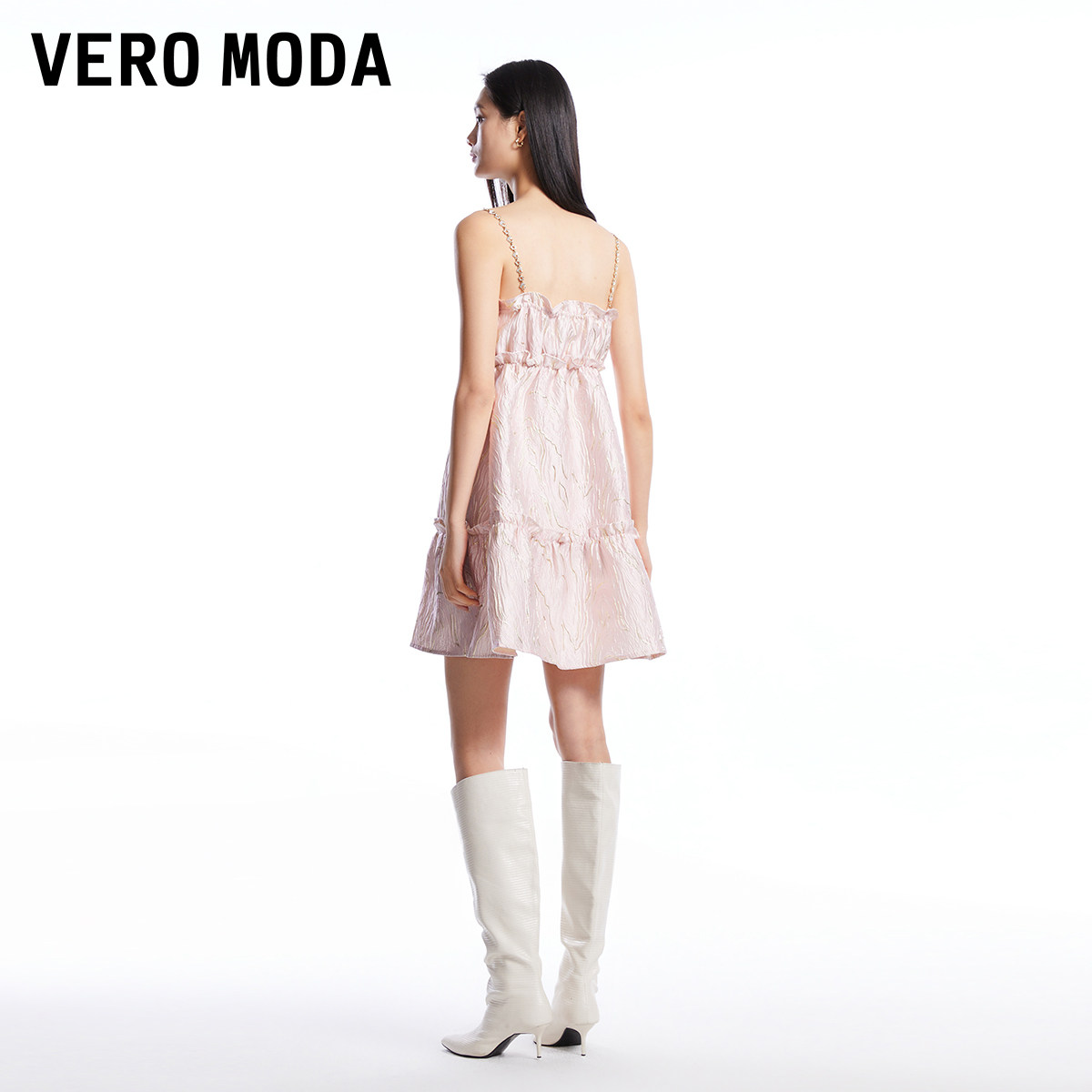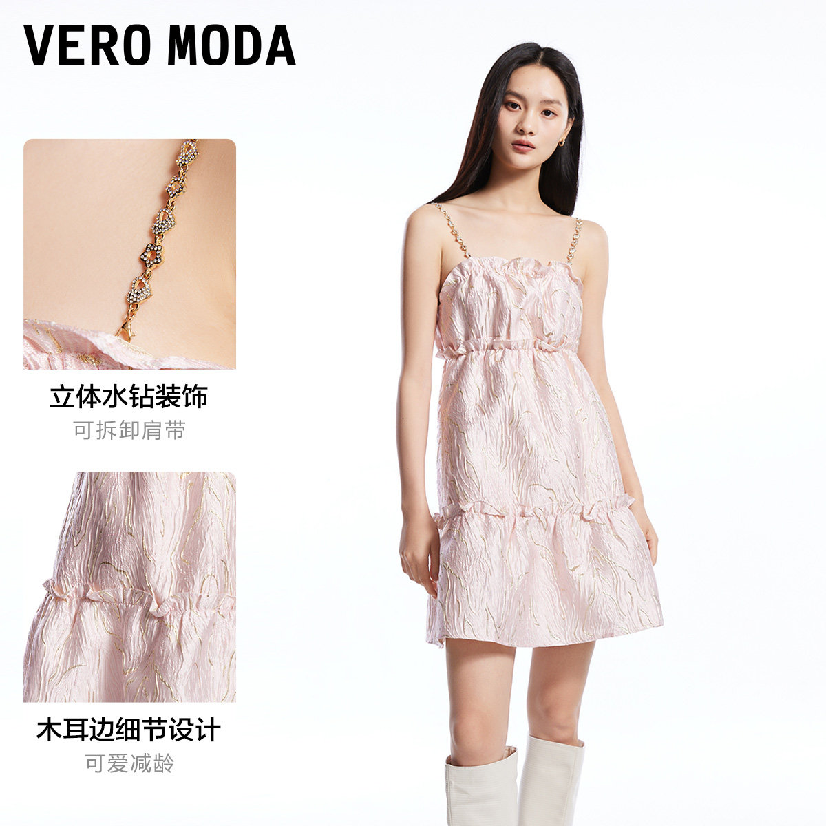 Vero Moda奥莱吊带连衣裙秋冬新款木耳边减龄A摆肌理感短裙子无袖
