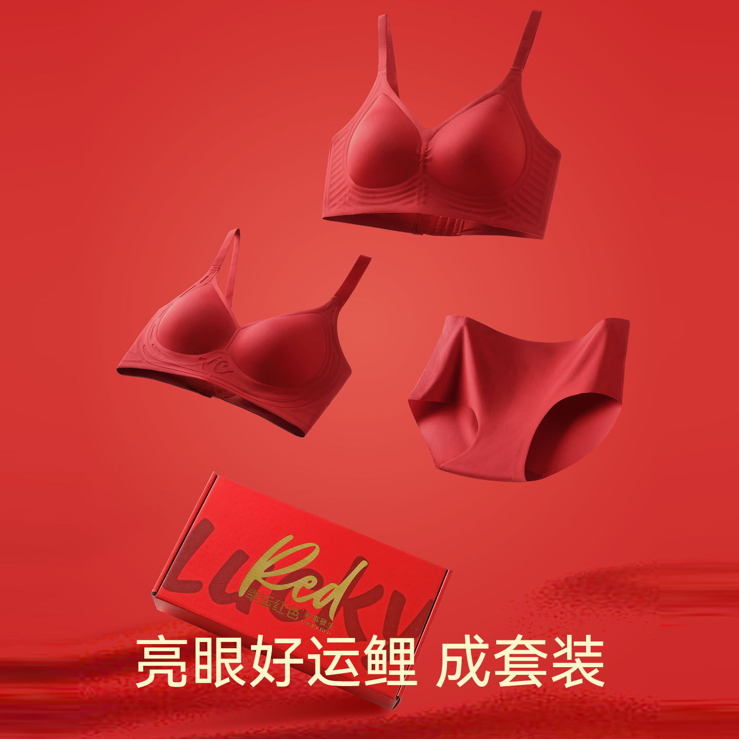 红色内衣套装女本命年结婚新娘无痕小胸聚拢内裤文胸礼盒新年礼物