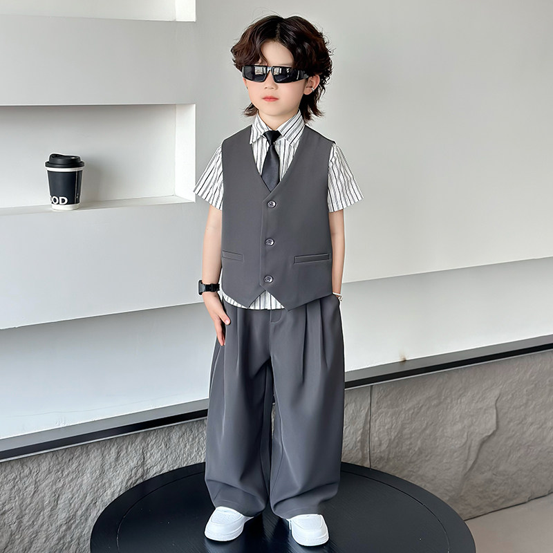 六一儿童节小主持人演出服男童西装套装英伦幼儿园男孩毕业班服夏