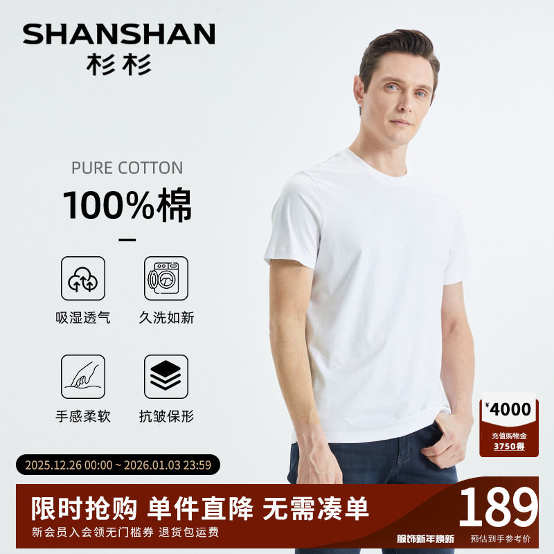 SHANSHAN杉杉官方中年男士短袖t恤纯棉2025夏季新款白色圆领t恤男