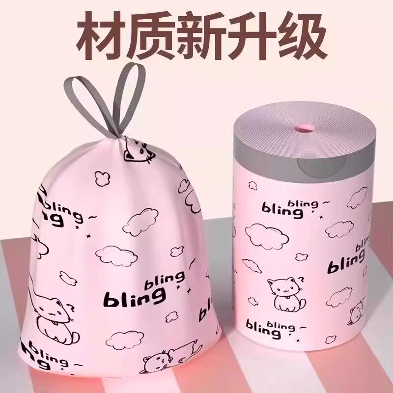 300只抽绳式垃圾袋家用厨房钢袋加厚手提自动收口学生宿舍塑料袋