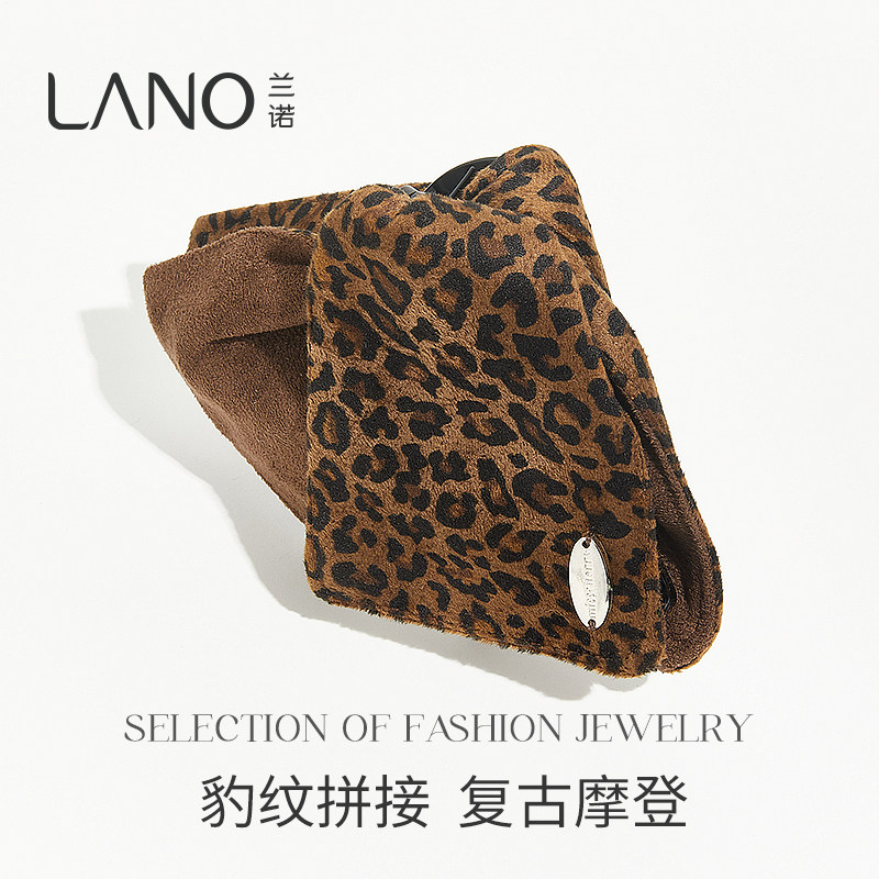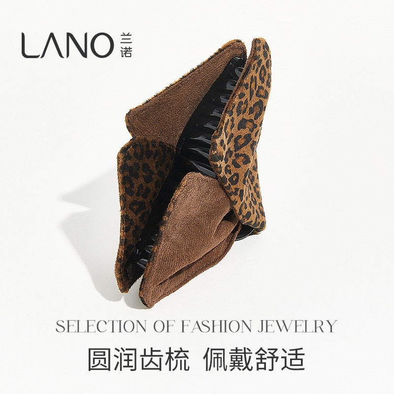 兰诺豹纹三角抓夹女高级感2025新款大号发量大后脑勺半扎发鲨鱼夹