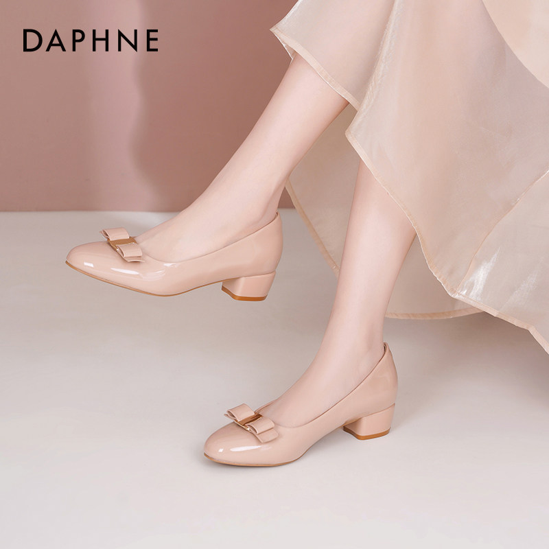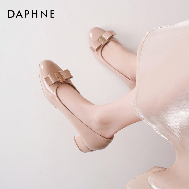 达芙妮法式玛丽珍鞋女2026新款春圆头蝴蝶结浅口单鞋粗跟芭蕾单鞋