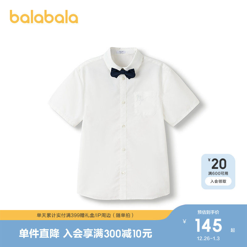 巴拉巴拉童装儿童衬衫男童短袖上衣夏装薄款2025新款时尚百搭洋气