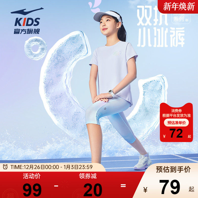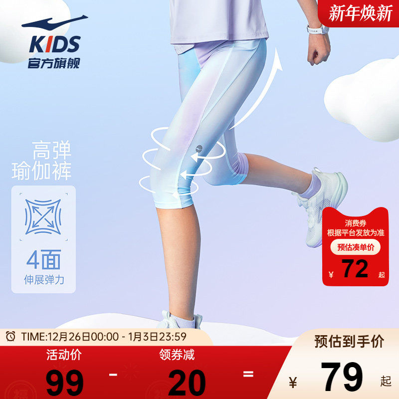 鸿星尔克童装儿童运动紧身裤夏季凉感七分裤女童瑜伽裤中大童裤子