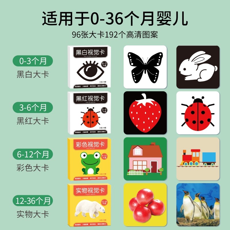 黑白卡新生儿早教彩色卡片婴儿视觉激发色卡宝宝追视安抚益智玩具