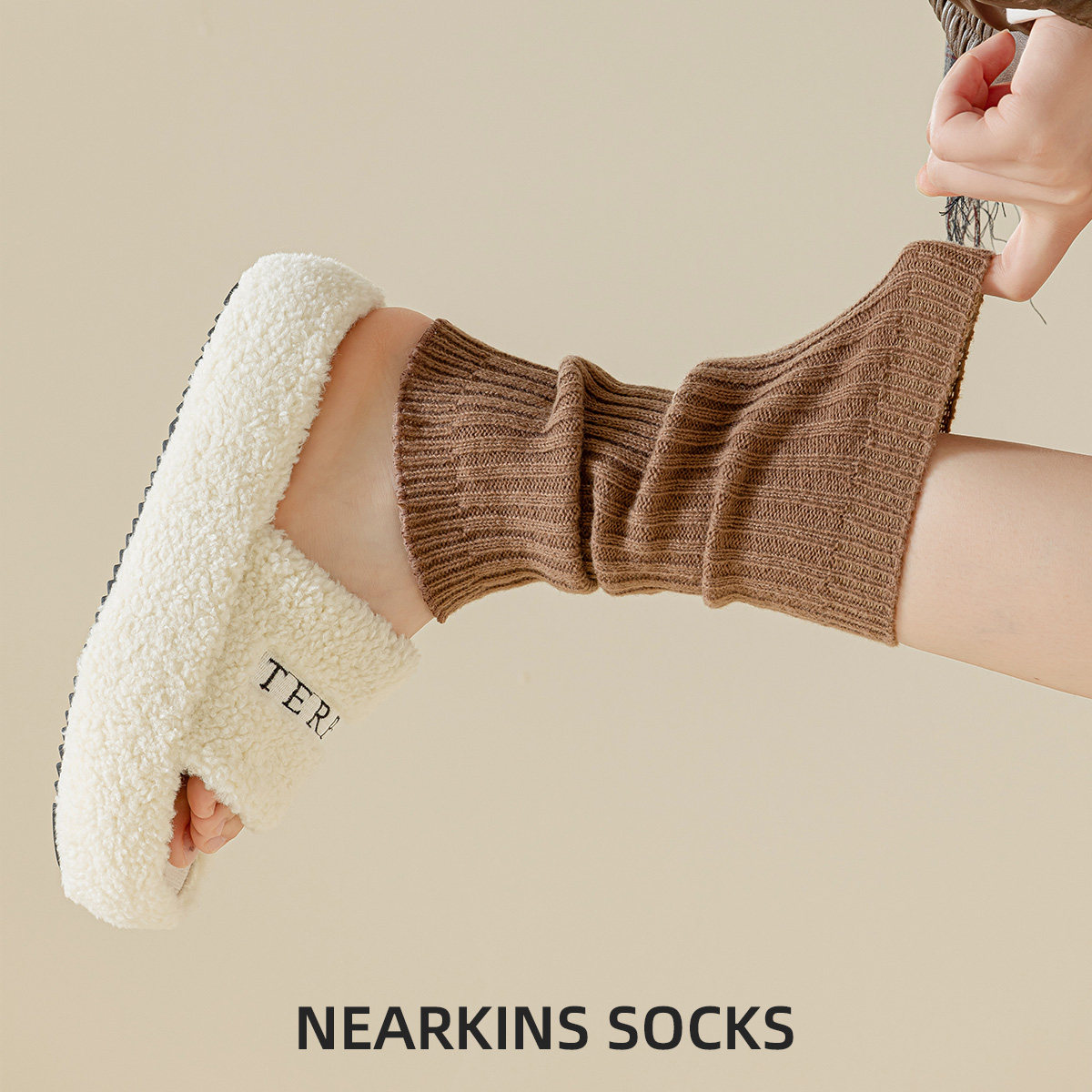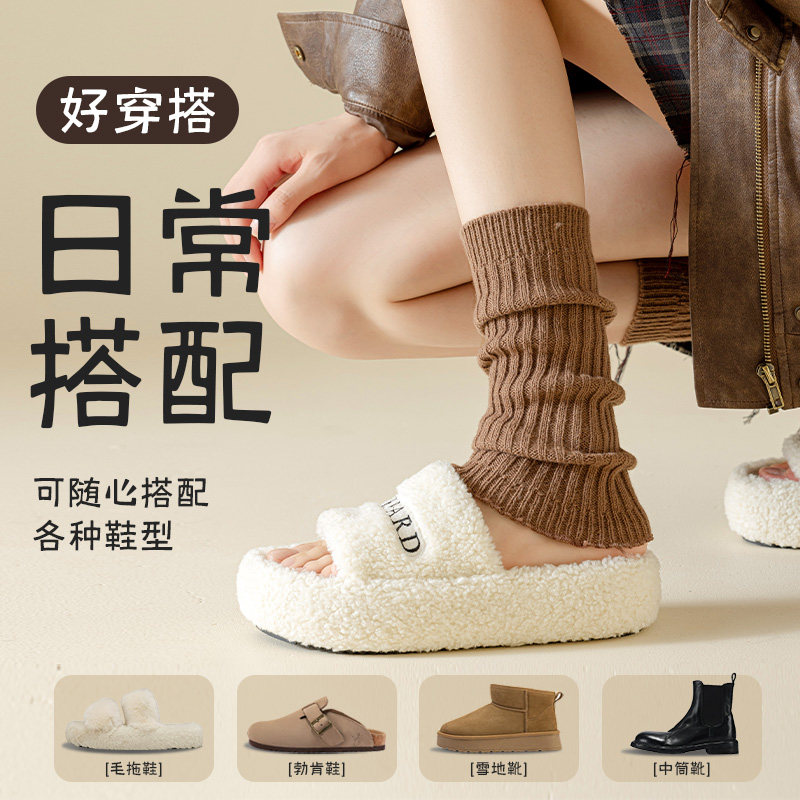 袜套搭配勃肯鞋的白色针织保暖堆堆袜秋冬季女款中筒长筒小腿腿套