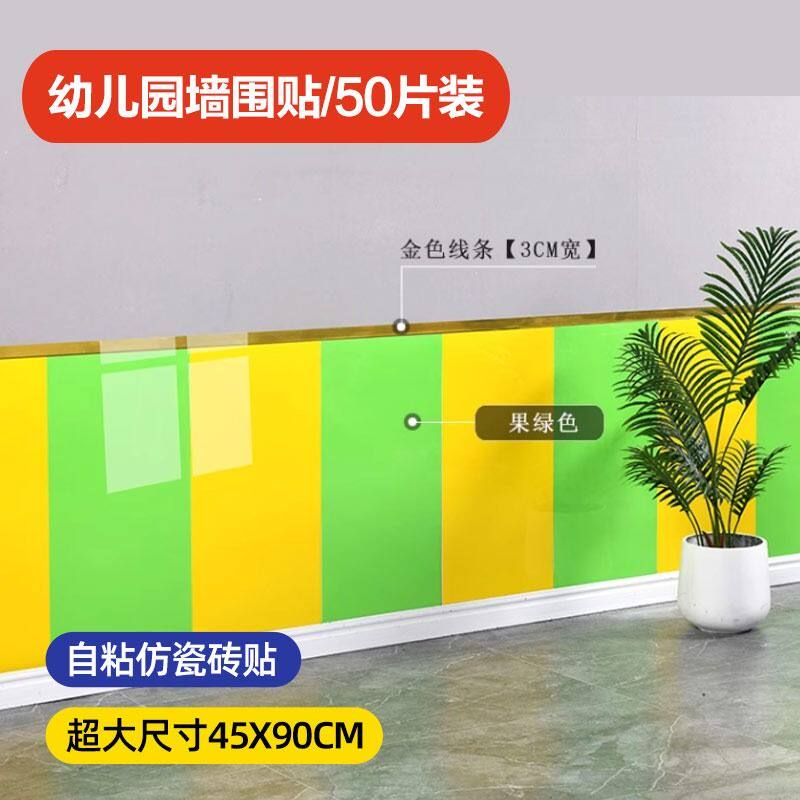 仿瓷砖墙贴纯色墙裙护墙板墙面翻新装饰贴纸自粘防水防潮大理石纹