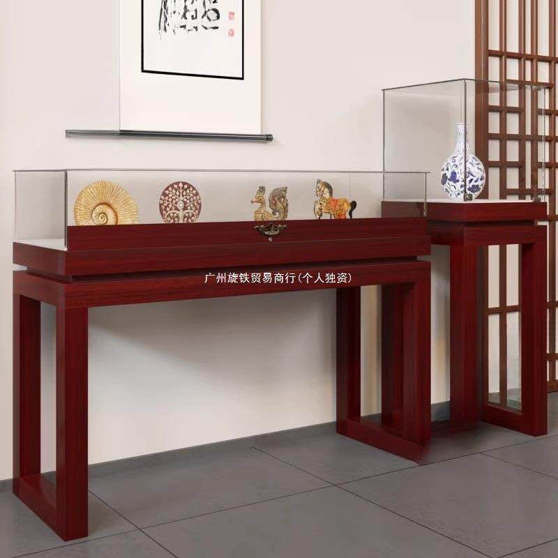 实木复古珠宝展示柜翡翠玉器柜台中式柜博物馆展厅玻璃展柜陈列柜