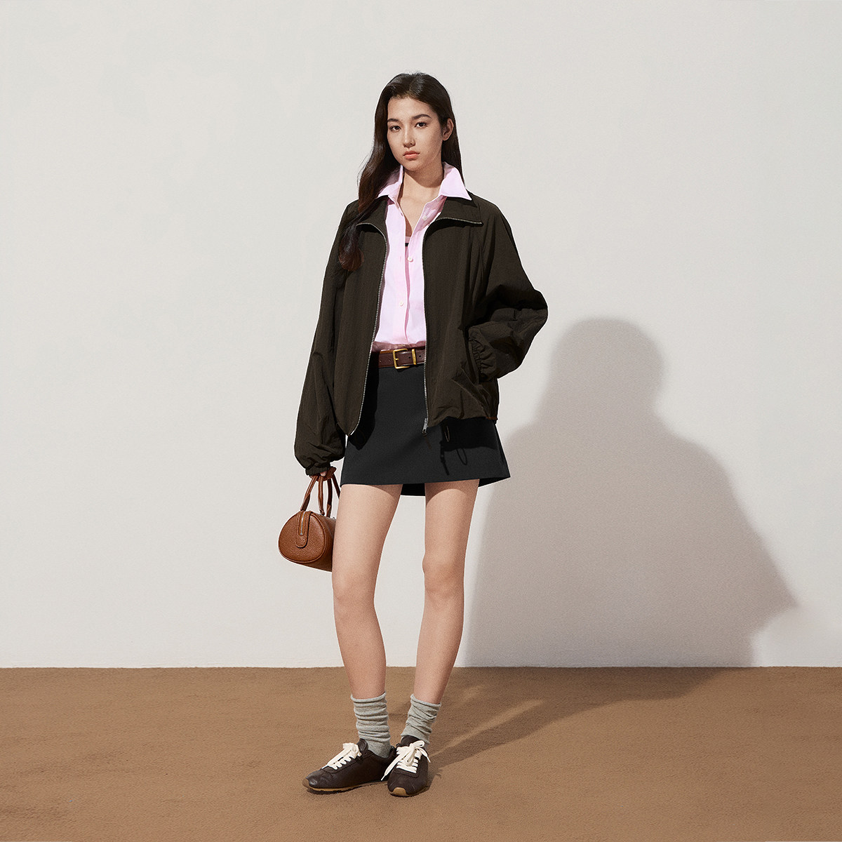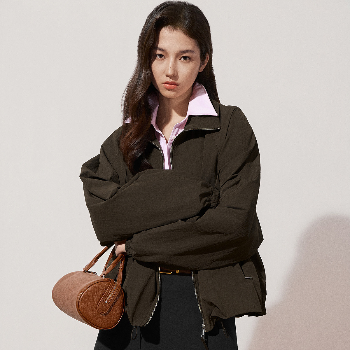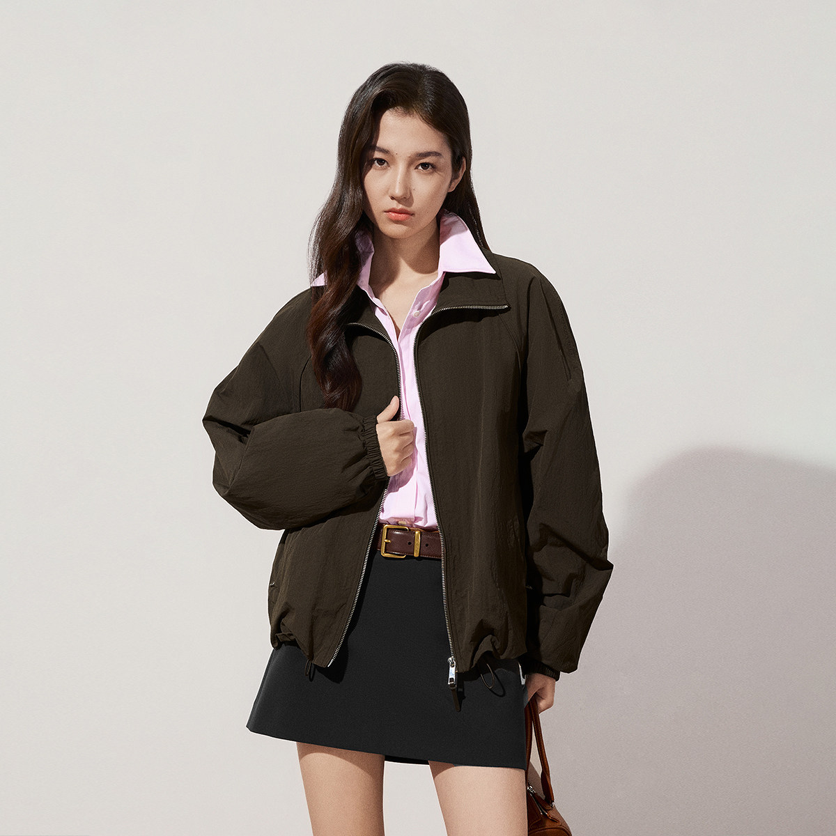 【季末折扣】欧时力拉链两穿领休闲外套上衣宽松百搭2025秋冬新品
