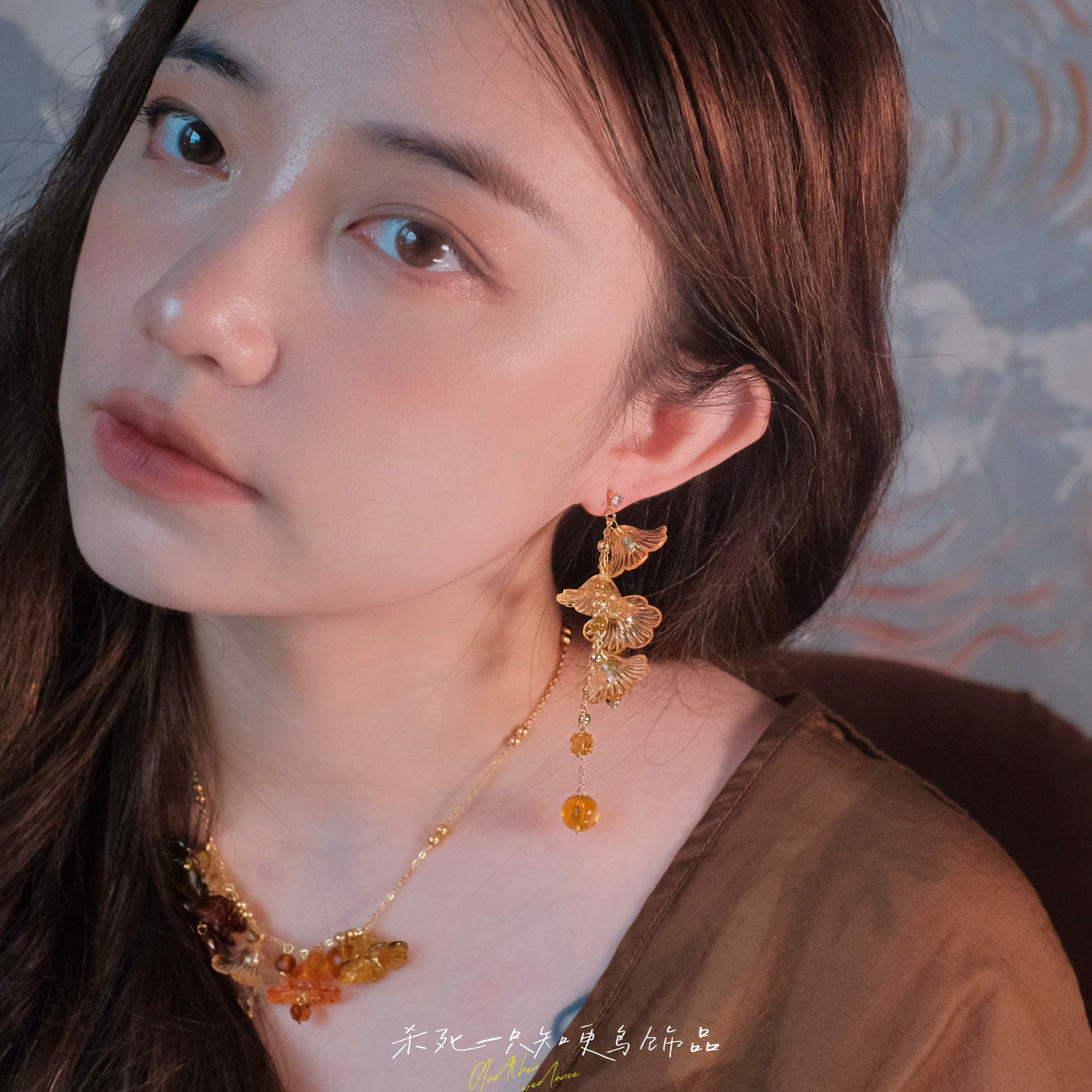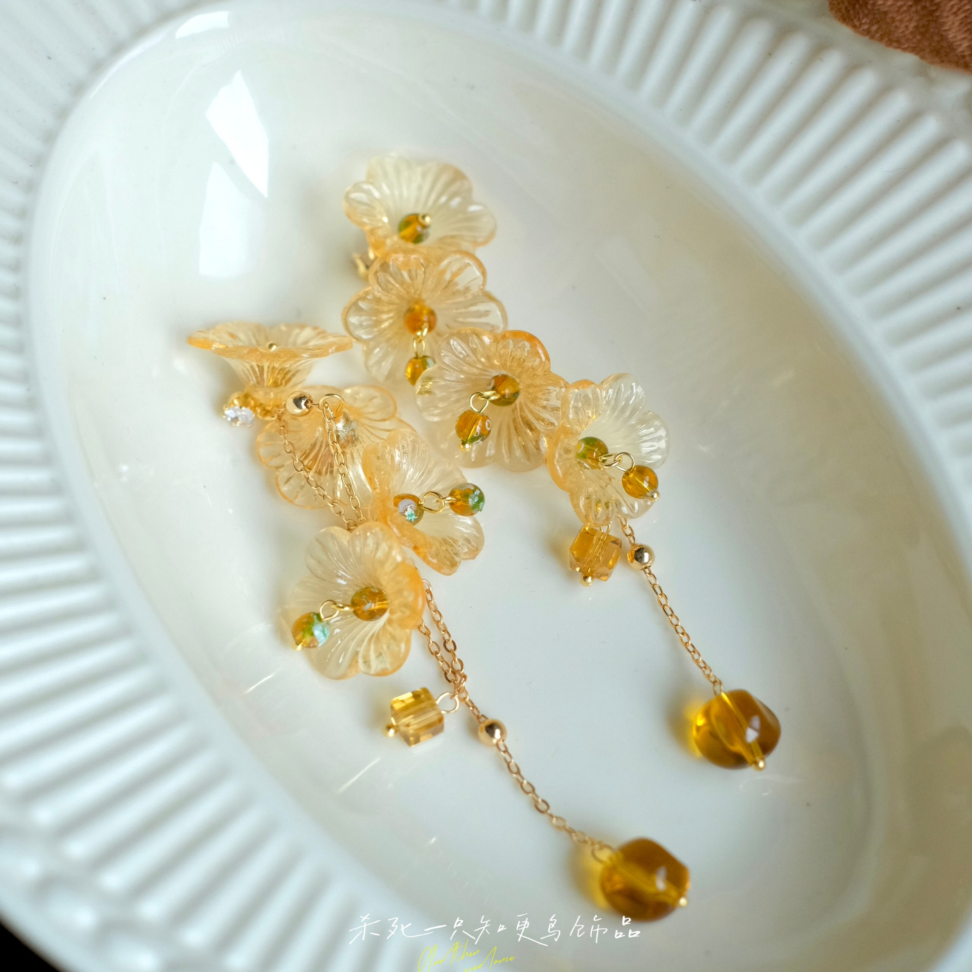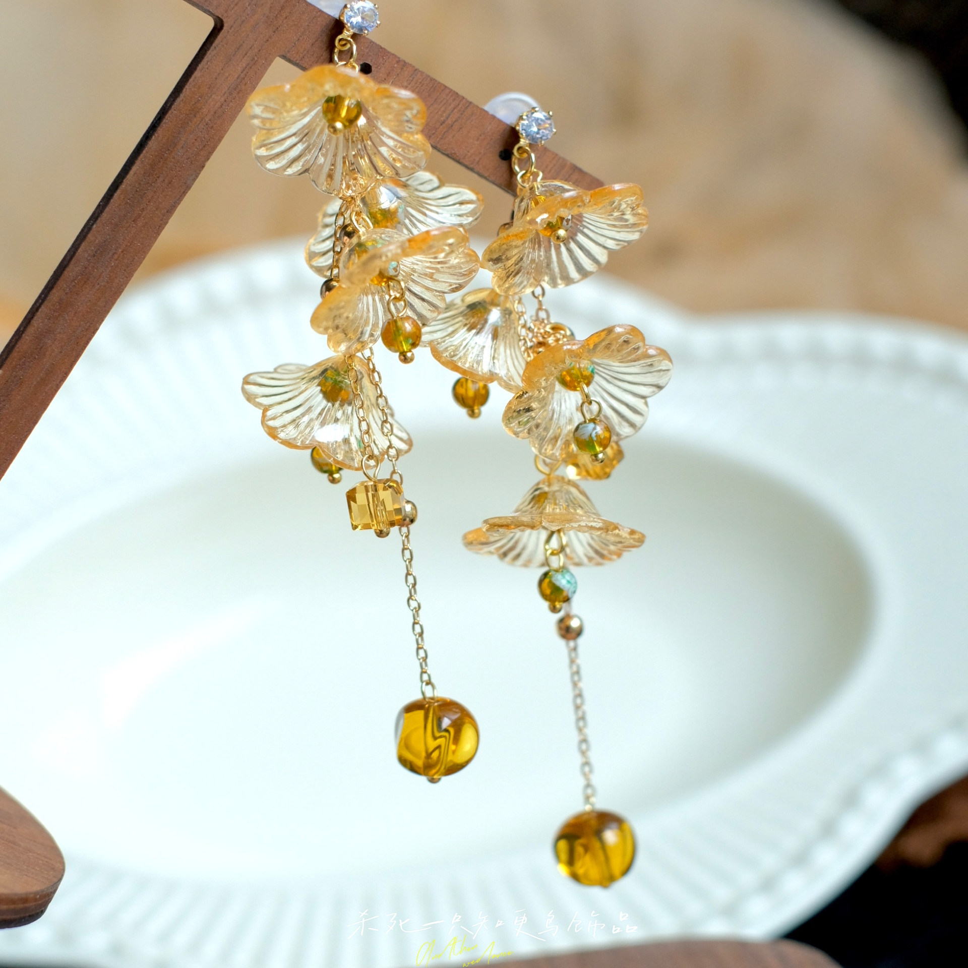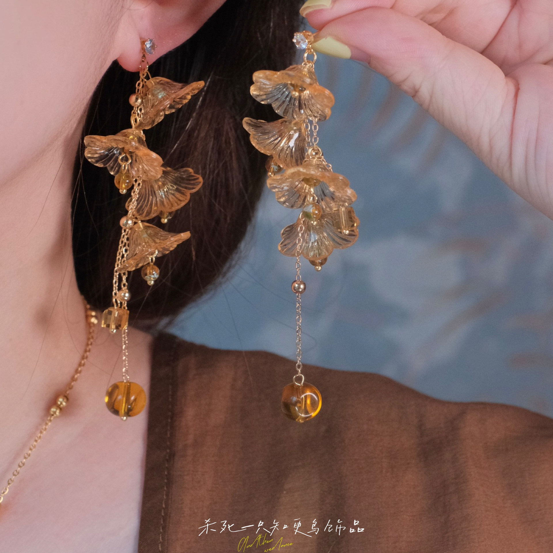 《铃芽之旅》原创仙气清冷感美拉德咖色喇叭花朵流苏耳环耳夹耳饰