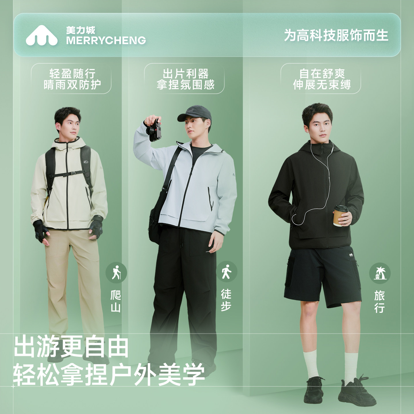 【新品】美力城时尚户外防水透气不闷热经典软壳短款外套男女同款