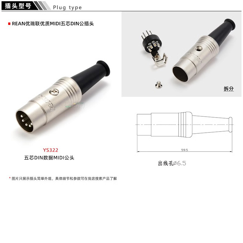 佳耐美音频线五芯DIN插头连接线NYS322电子鼓钢琴键盘MIDI数据线
